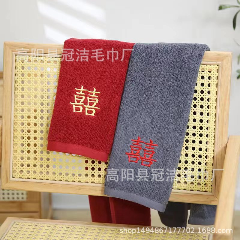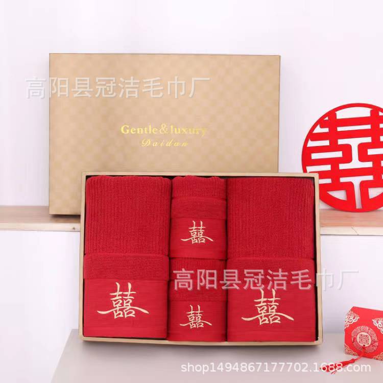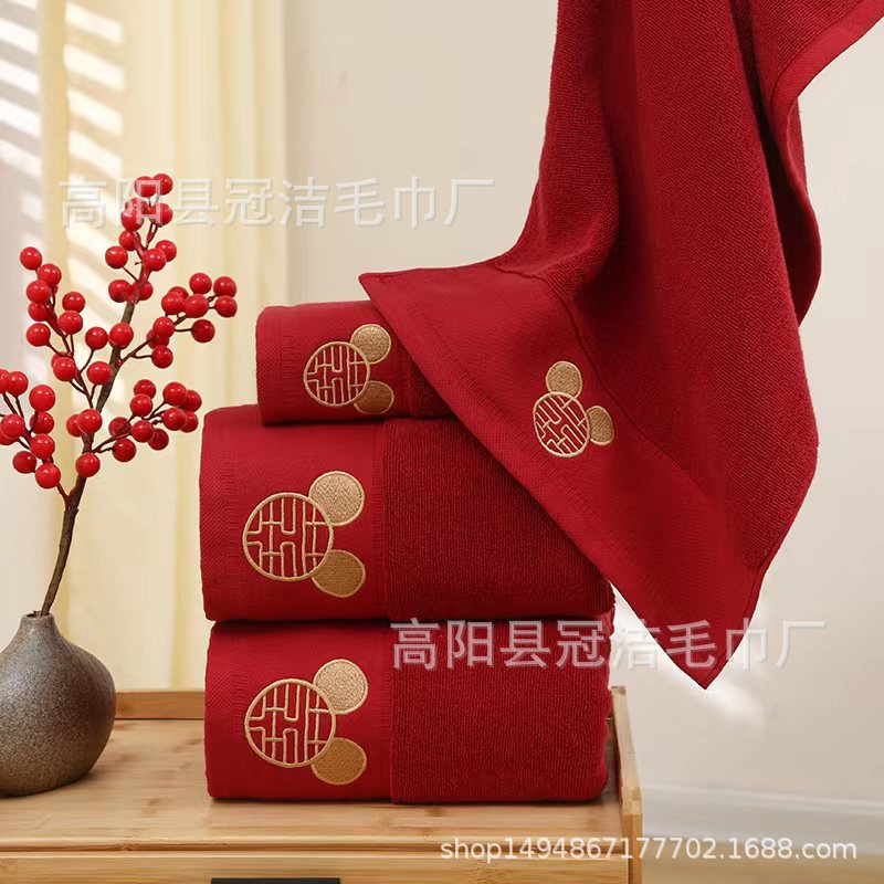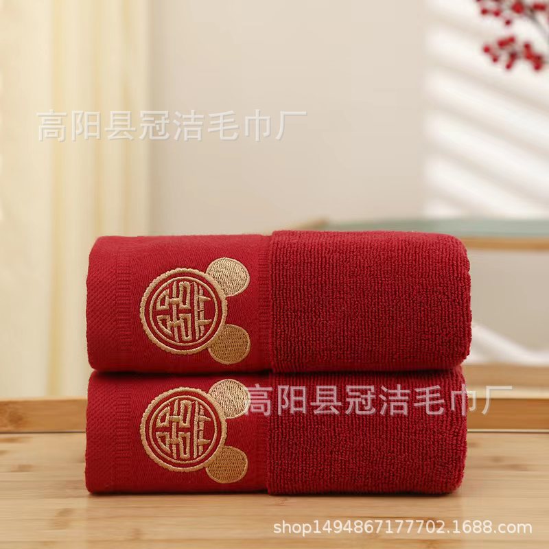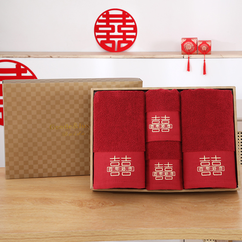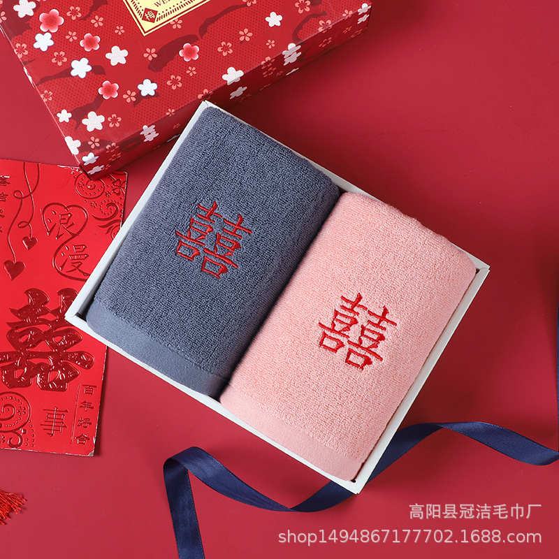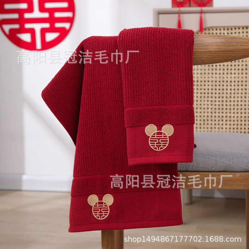 버건디 웨딩 코튼 타월 자수 커플 목욕 타월 웨딩 리턴 웨딩 웨딩 연회 동반 손 선물 4 피스 세트스토어 가기