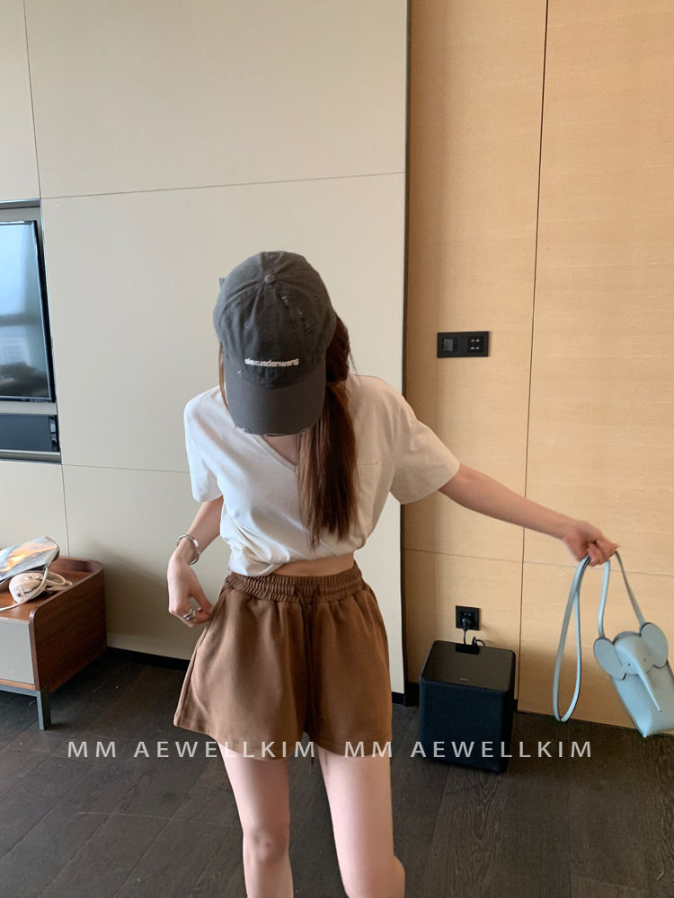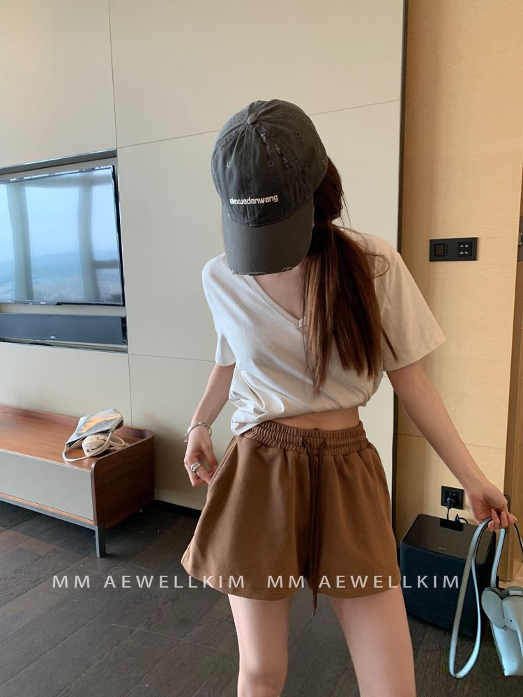 캐주얼 바지 여성 외부 착용 캐주얼 느슨한 스포츠 반바지 여름 작은 새로운 높은 허리 끈 스트레이트 핫 바지스토어 가기