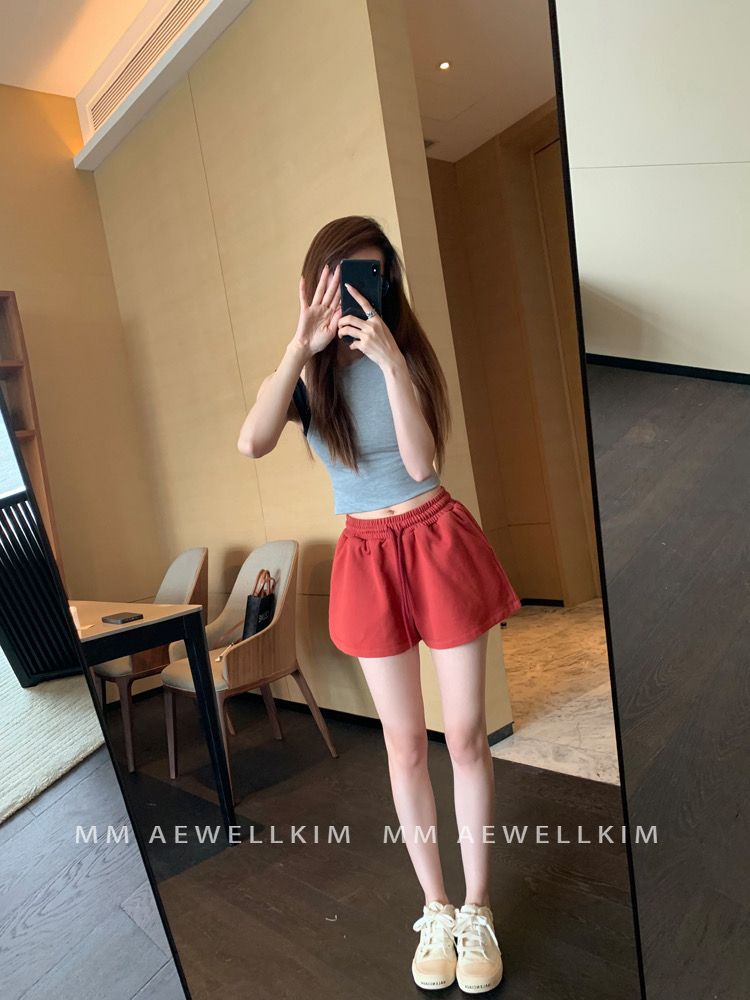 캐주얼 바지 여성 외부 착용 캐주얼 느슨한 스포츠 반바지 여름 작은 새로운 높은 허리 끈 스트레이트 핫 바지