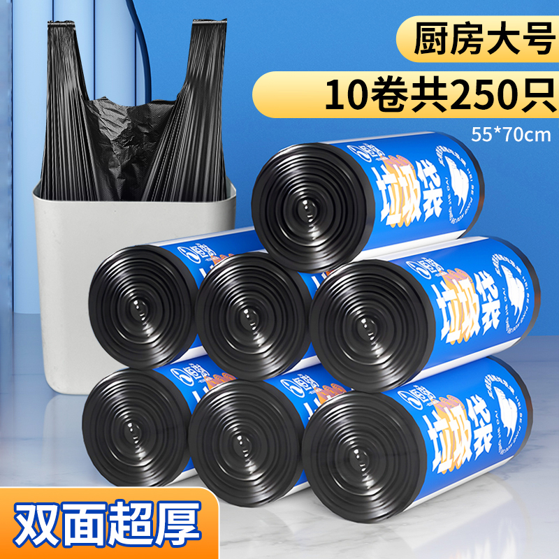 쓰레기 봉투 가정용 두꺼운 도매 및 저렴한 블랙 일회용 비닐 봉투 플랫 입 주방 조끼 휴대용 정스토어 가기