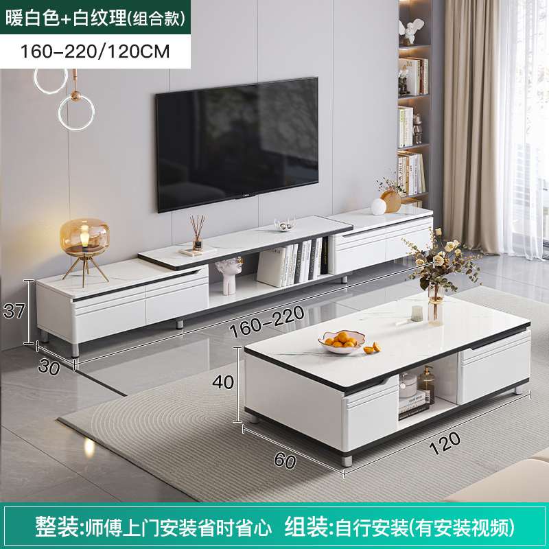 • 【TV 장식장】 세라믹 상판 2단 확장형 따뜻한 흰색 (160-220CM)⚑