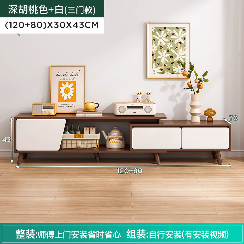 북유럽 TV 내각 현대 간단한 침실 거실 가구 작은 아파트 단단한 나무 다리 커피 테이블 TV 캐비닛 세트 Zheng Zhe스토어 가기