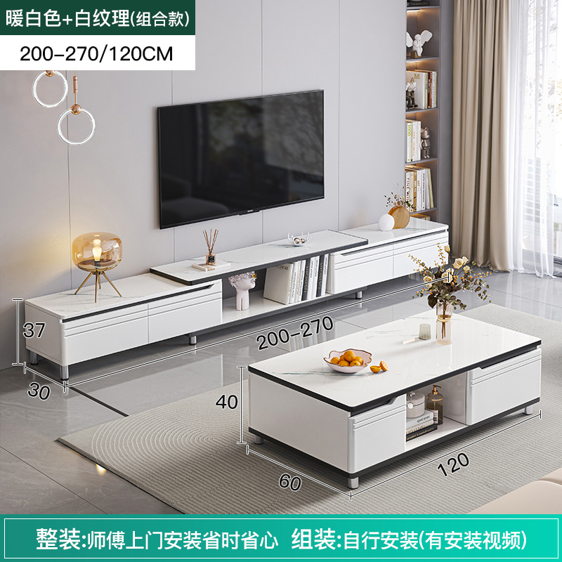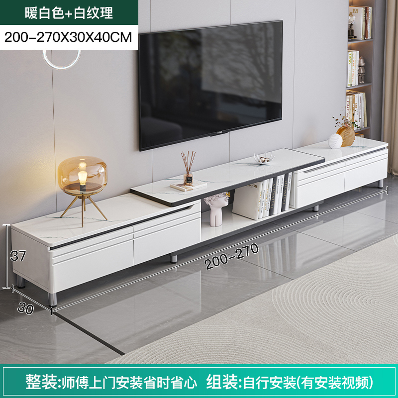 • 【TV 장식장】 세라믹 상판 2단 확장형 따뜻한 흰색 (200-270CM)⚑