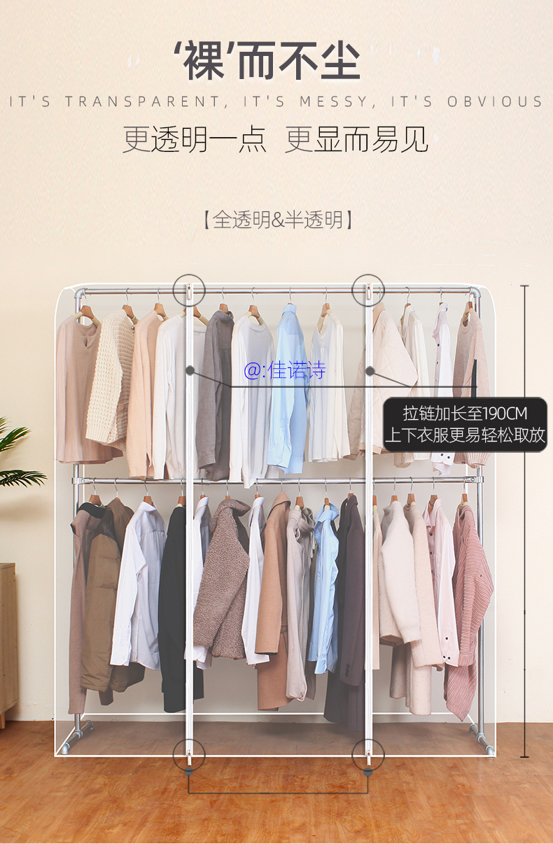 더블 폴 코트 랙 먼지 커버 바닥 형 옷 옷걸이 의류 커버 플라스틱 투명 의류 커버 의류 코트 정