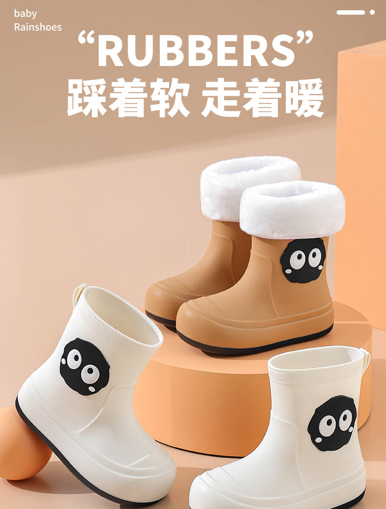 귀여운 한국식 만화 어린이 비 부츠 여성 양털 면화 미끄럼 방지 방수 신발 학생의 비 부츠 짧은 배럴 야외 워터 부츠