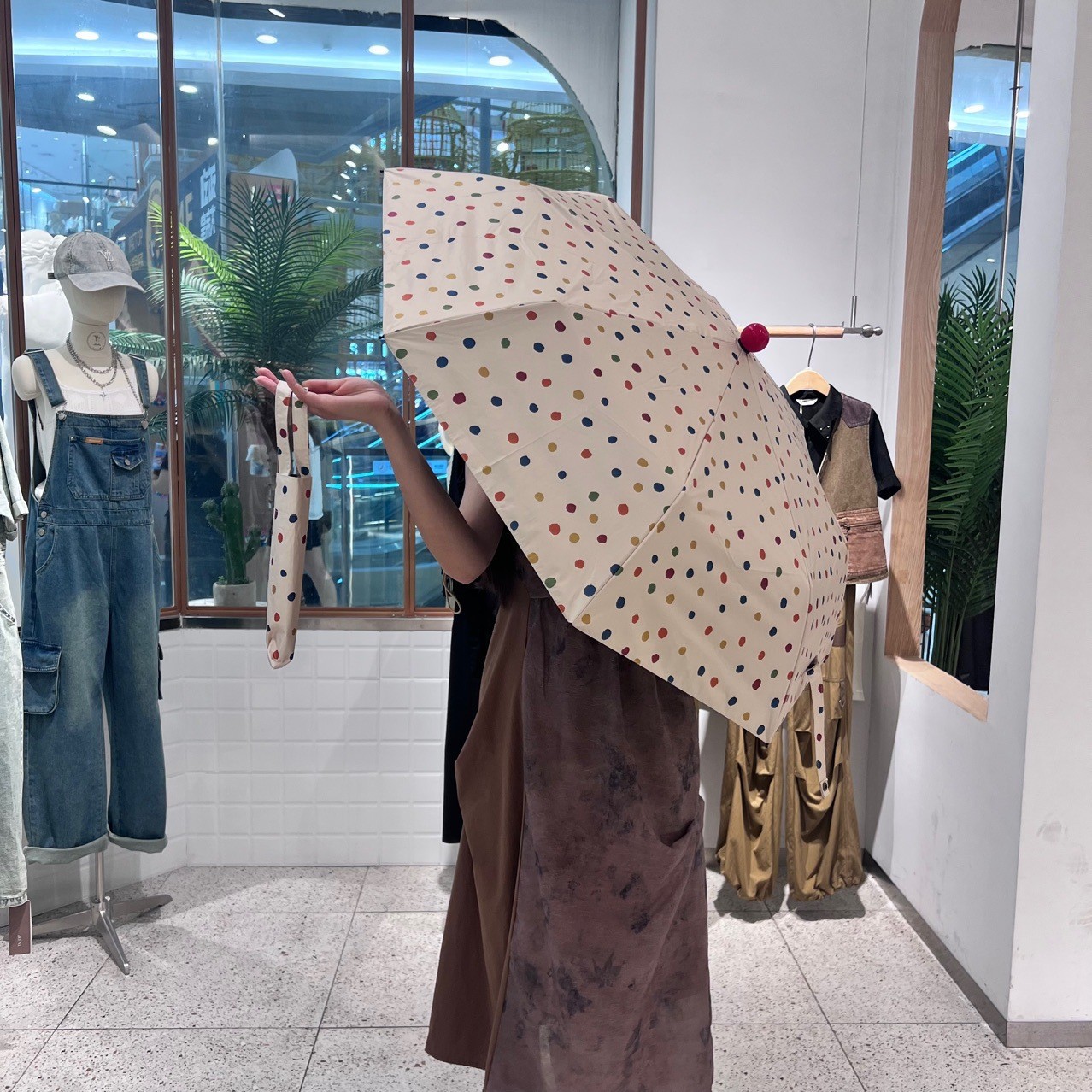핸드백 여성의 고급 감각 써니 우산 컬러 웨이브 도트 레드 볼 우산 세 접는 햇살 우산 블랙 고무 선 스크린 수동 우산스토어 가기