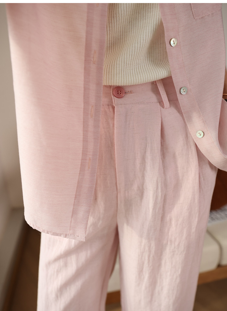 面料成分:6.1亚麻 46.4莱赛尔 39粘纤 8.5锦纶
