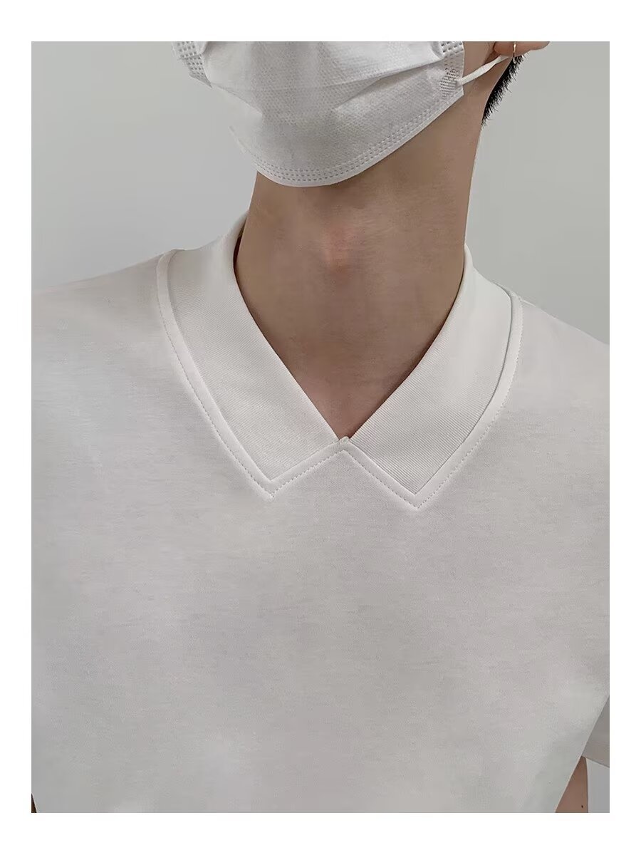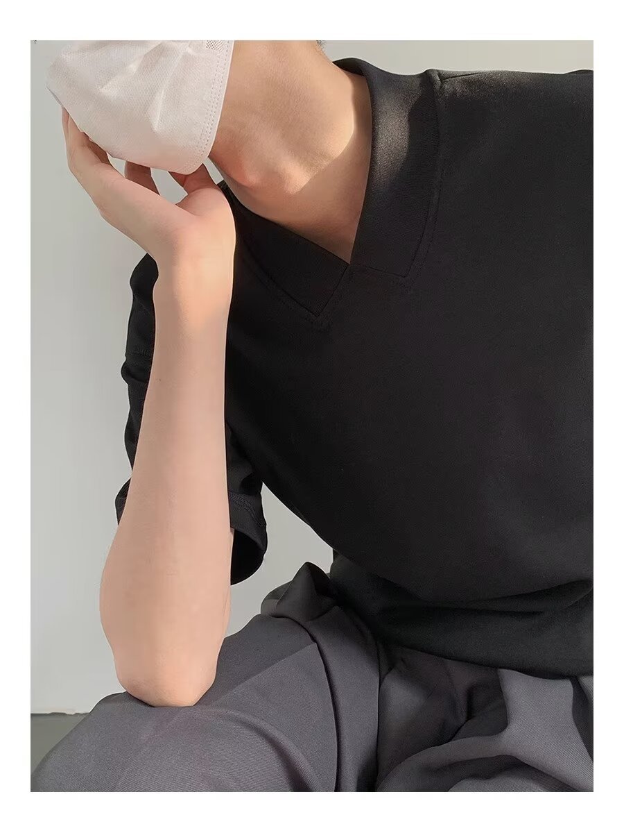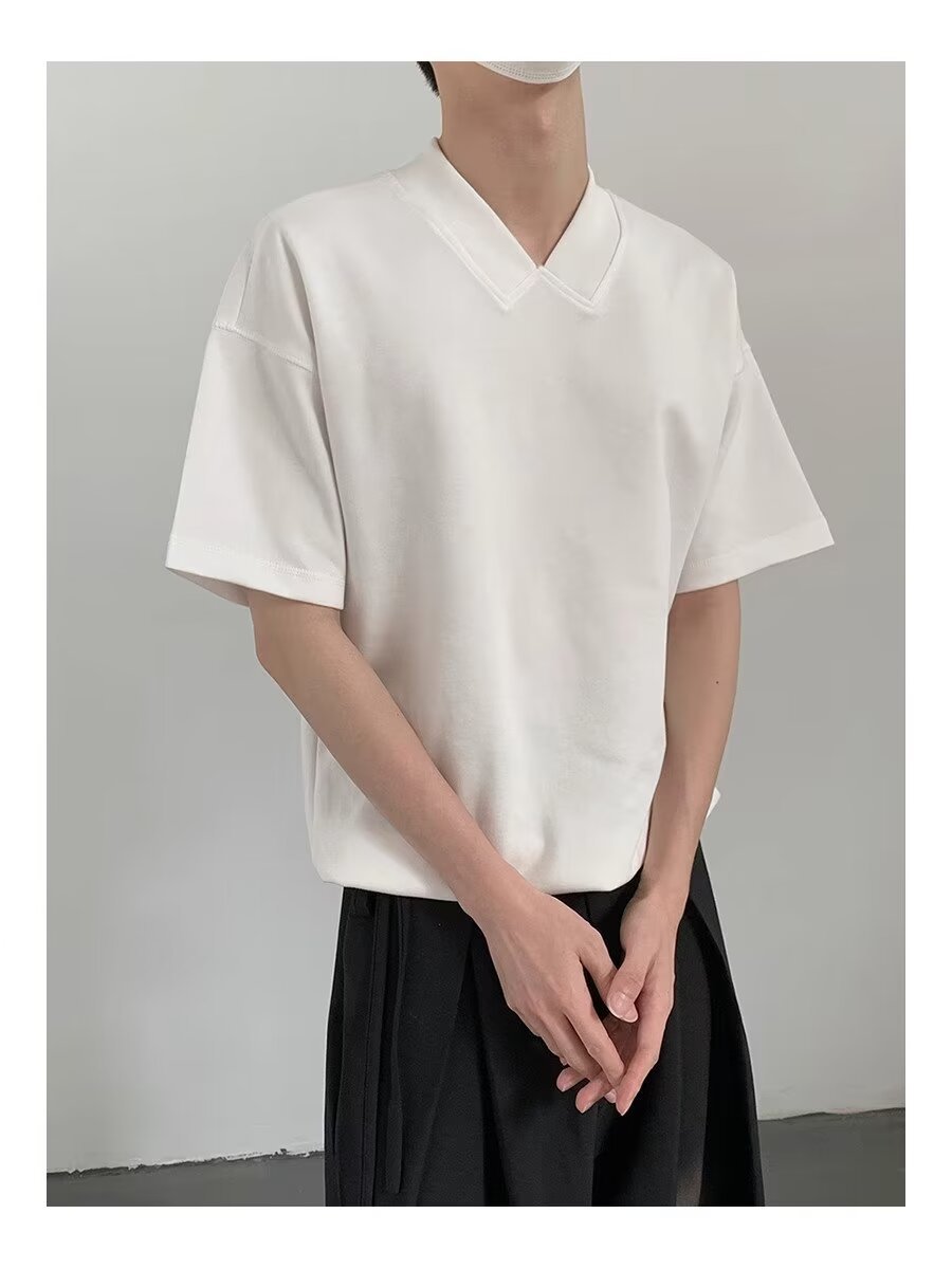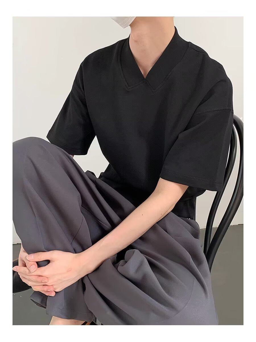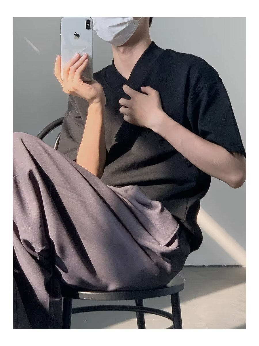 여름 얇은 반팔 올 매치 솔리드 컬러 한국 스타일 티셔츠 한국 뉴 남성 탑 V 넥 루즈 캐주얼 니트 셔츠