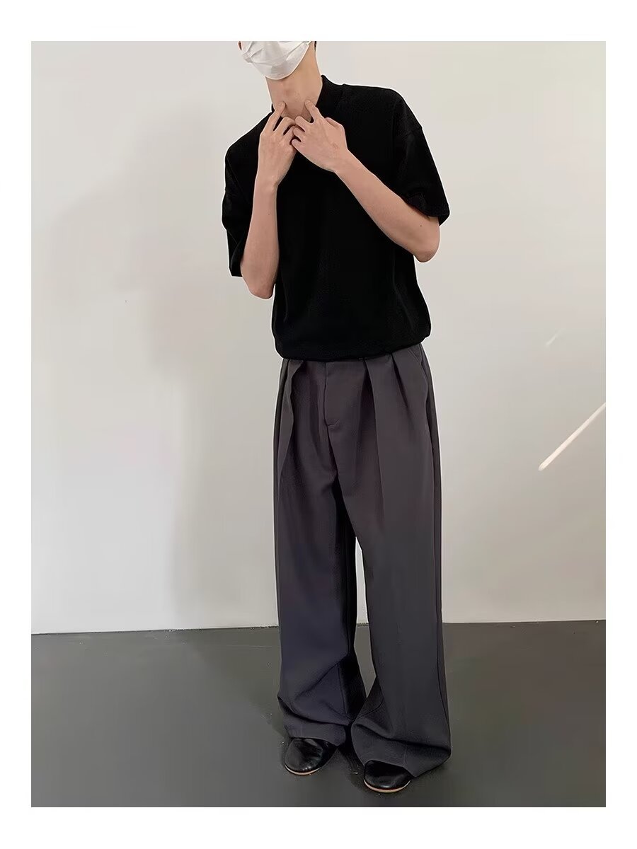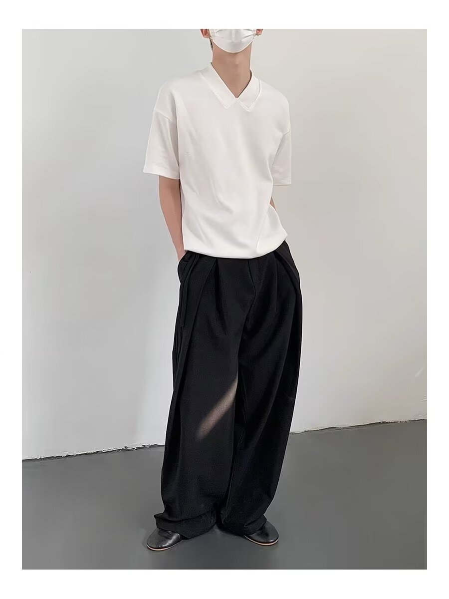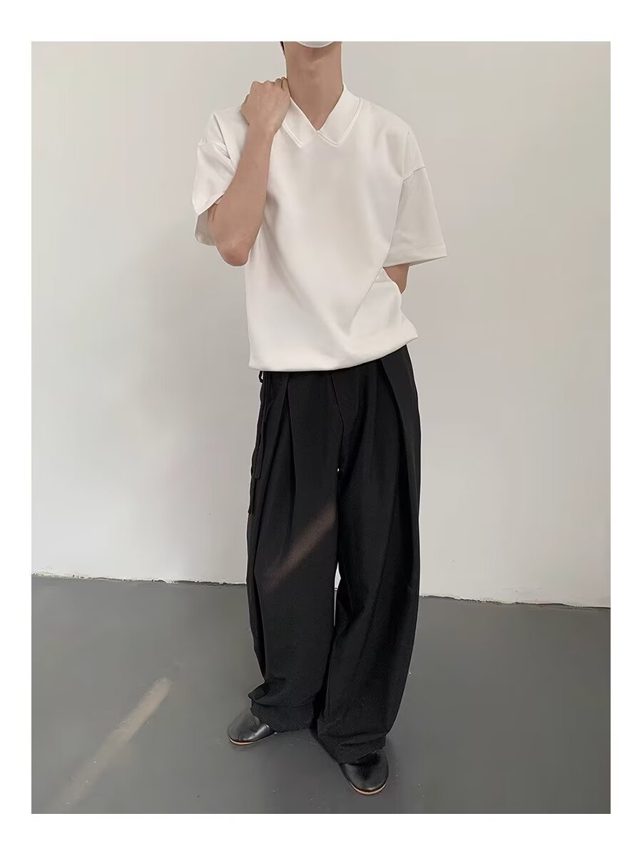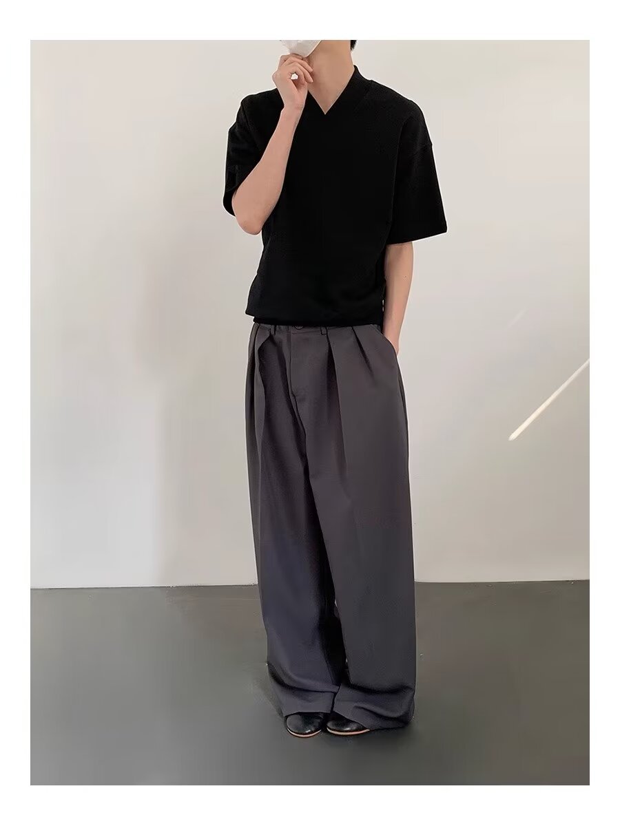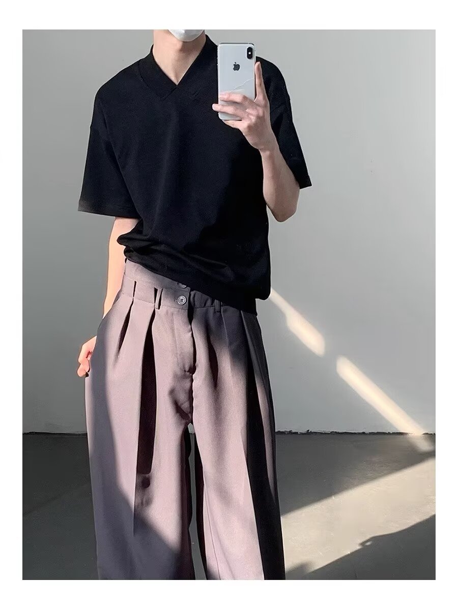 여름 얇은 반팔 올 매치 솔리드 컬러 한국 스타일 티셔츠 한국 뉴 남성 탑 V 넥 루즈 캐주얼 니트 셔츠