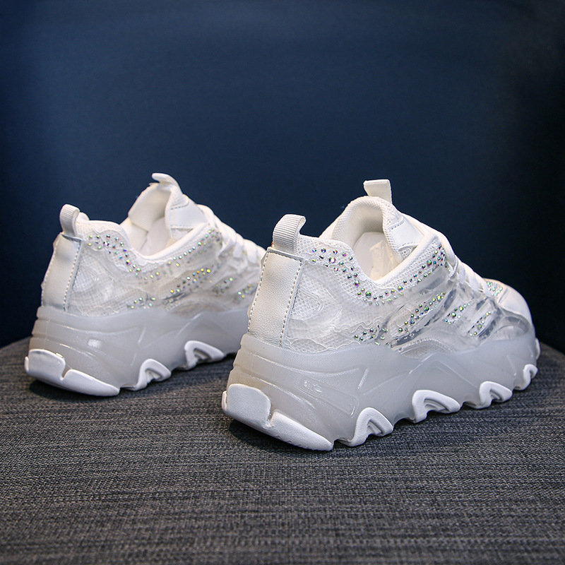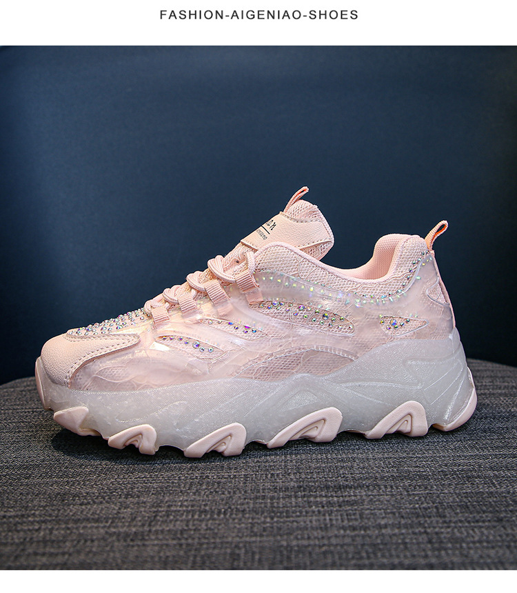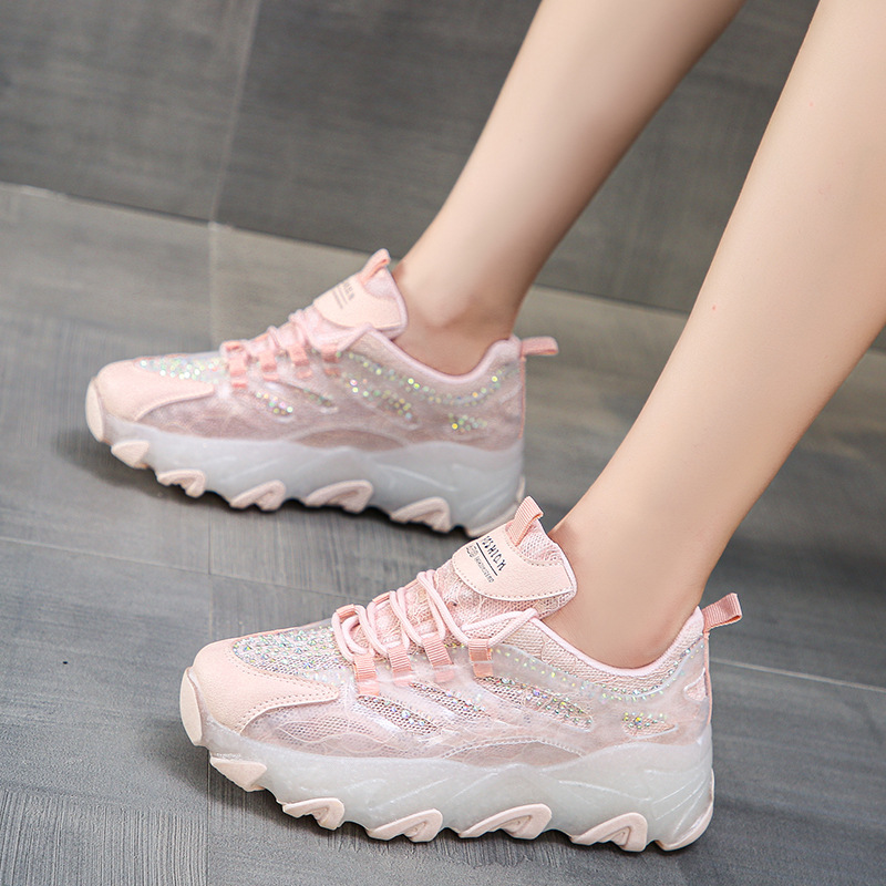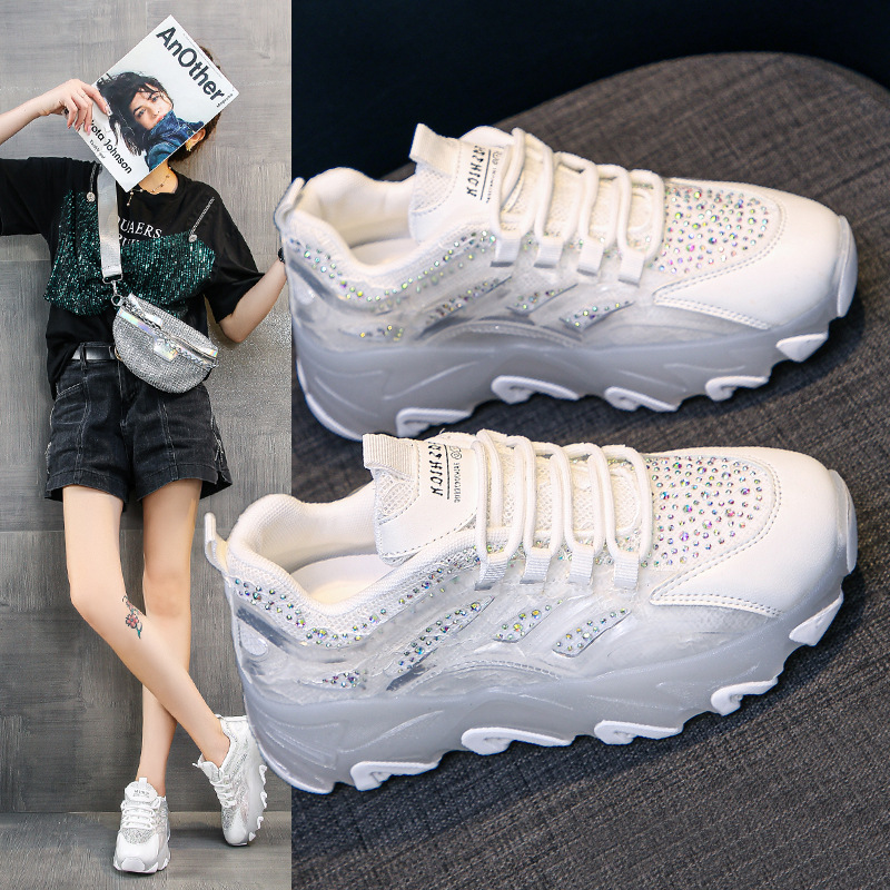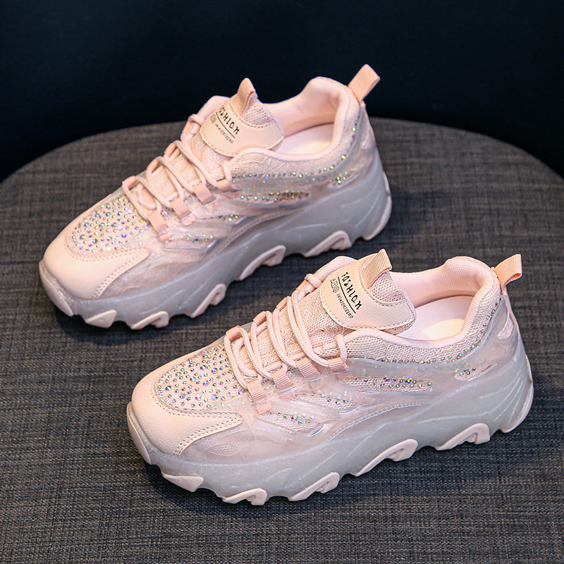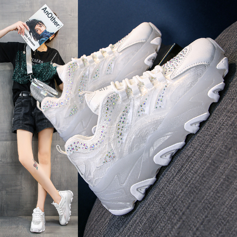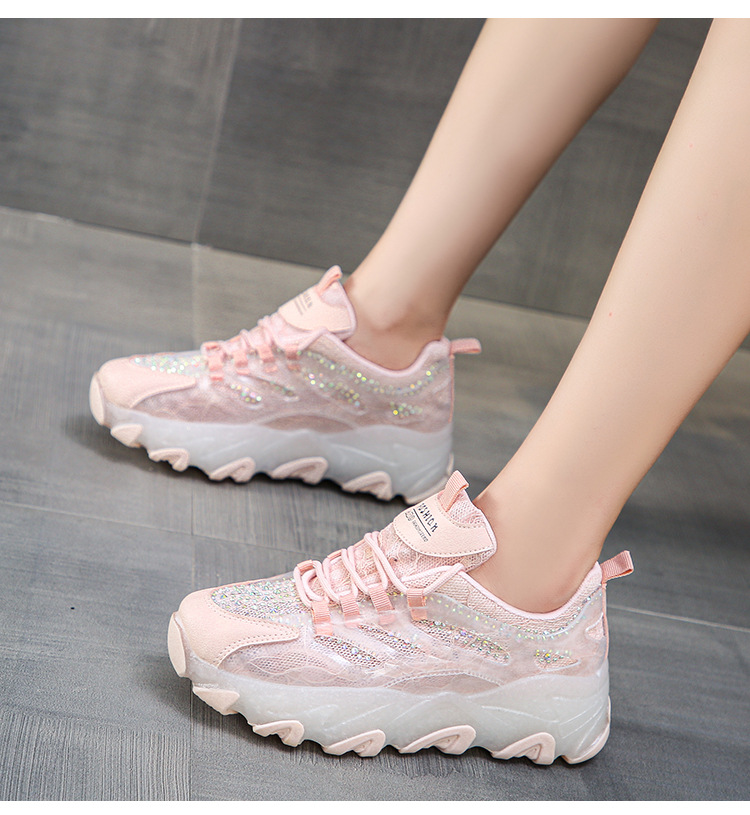 캐주얼 스포츠 메쉬 토레 신발 여성의 봄과 가을 새로운 2024 Rhinestone Jelly 하단 통기성 두꺼운 솔 증가 메쉬 신발
