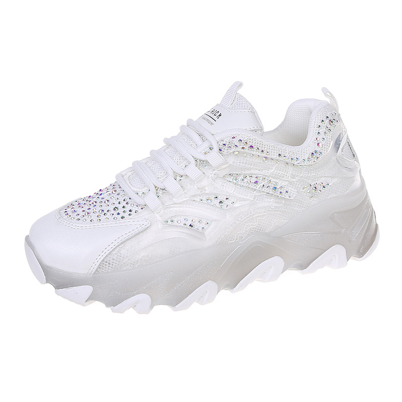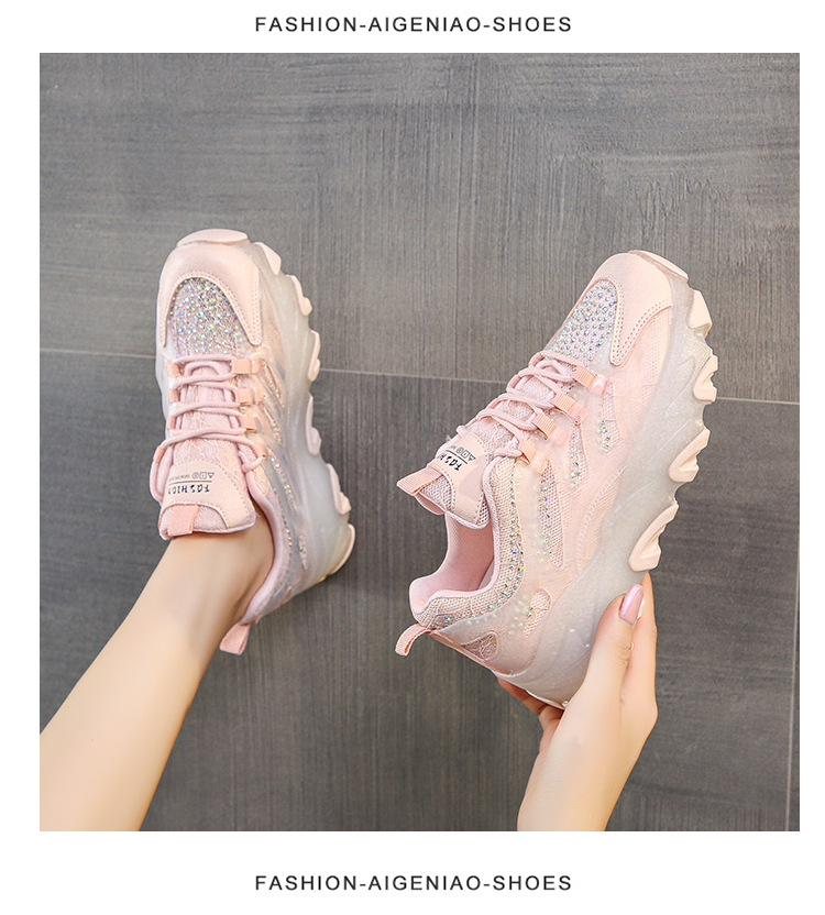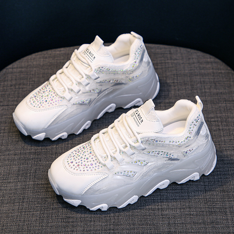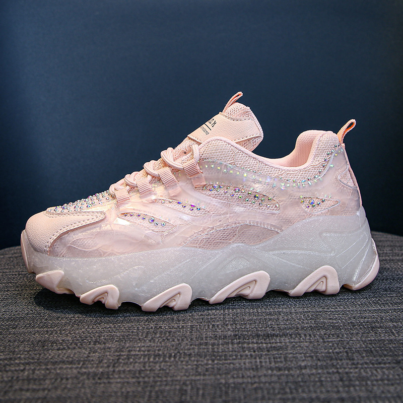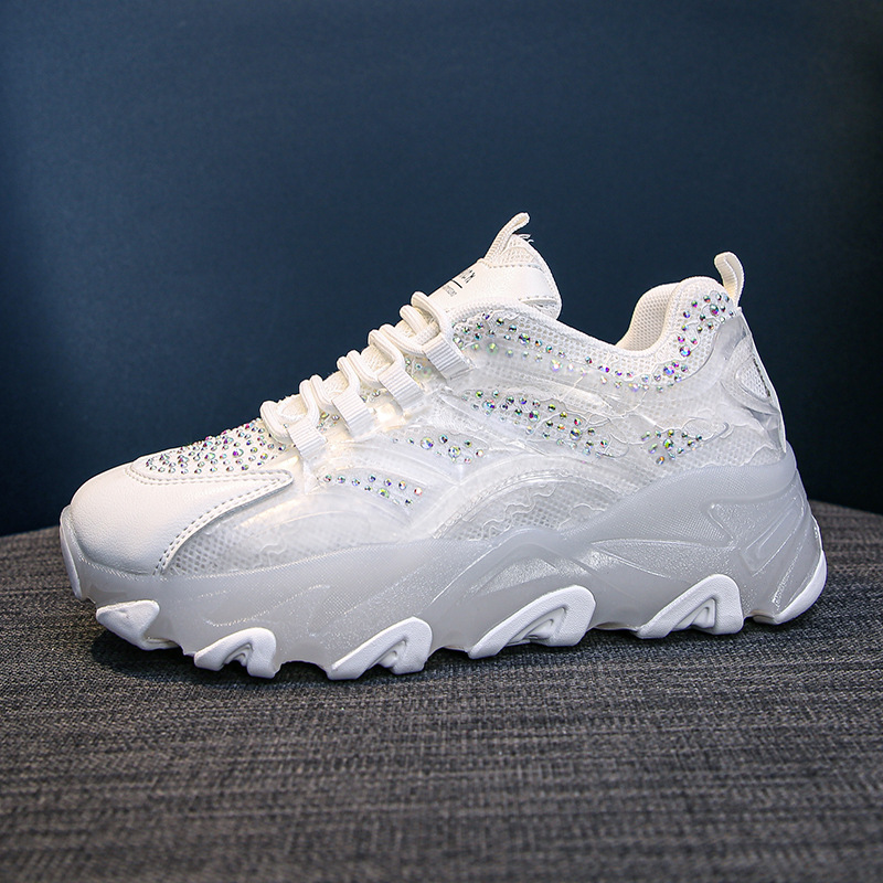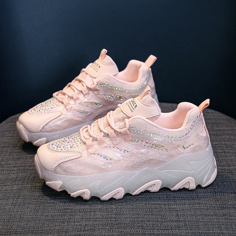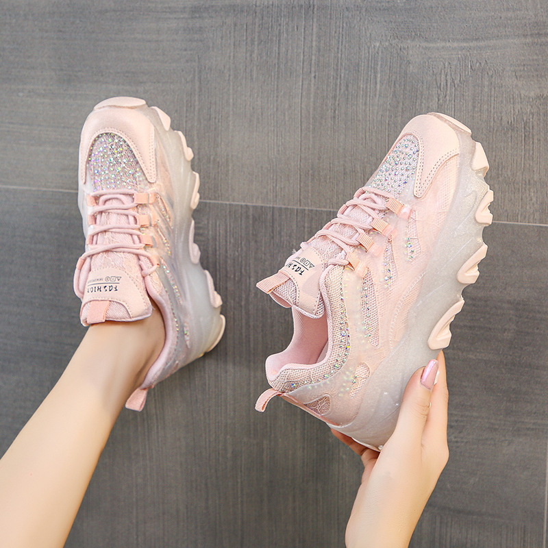 캐주얼 스포츠 메쉬 토레 신발 여성의 봄과 가을 새로운 2024 Rhinestone Jelly 하단 통기성 두꺼운 솔 증가 메쉬 신발