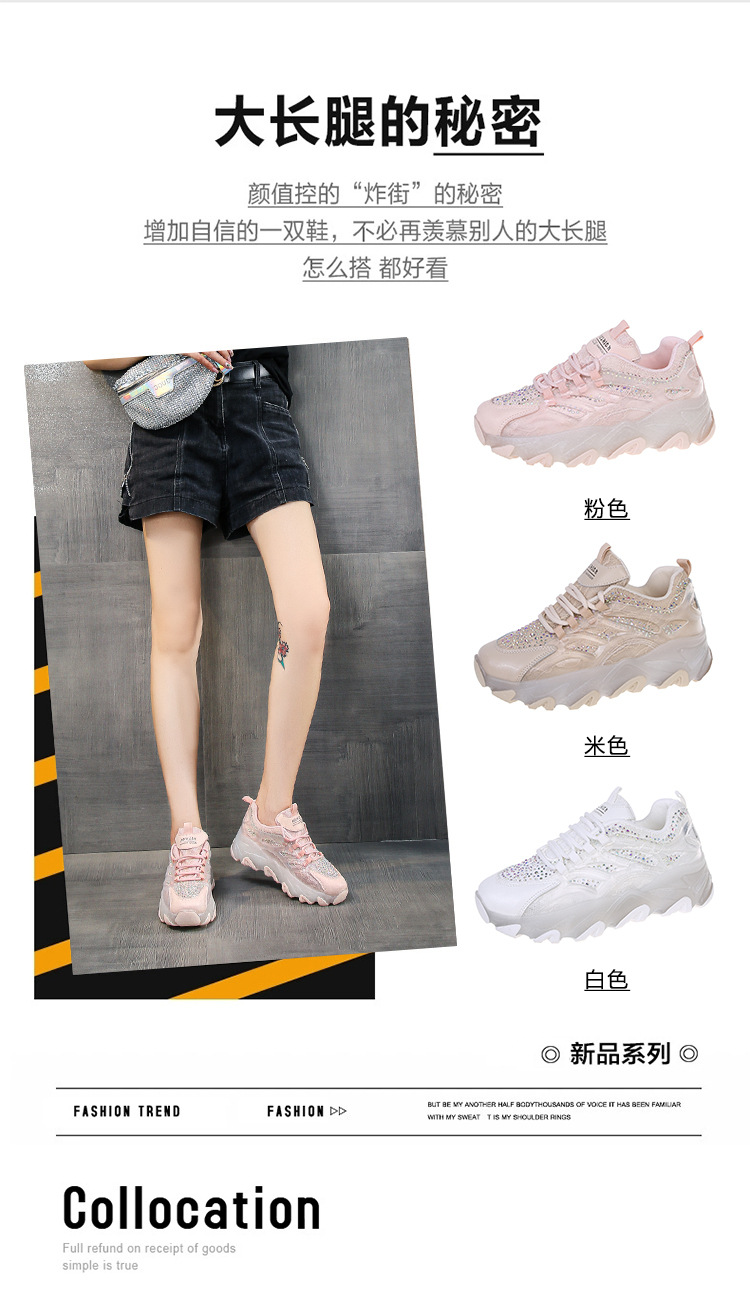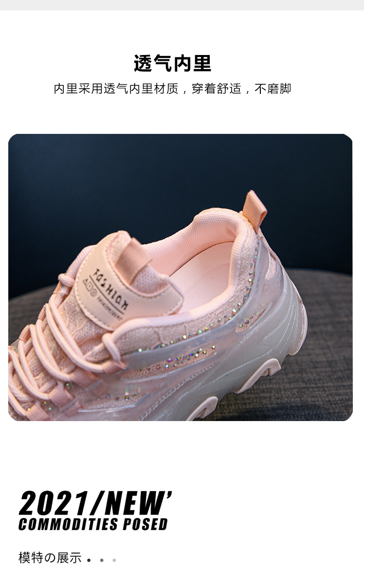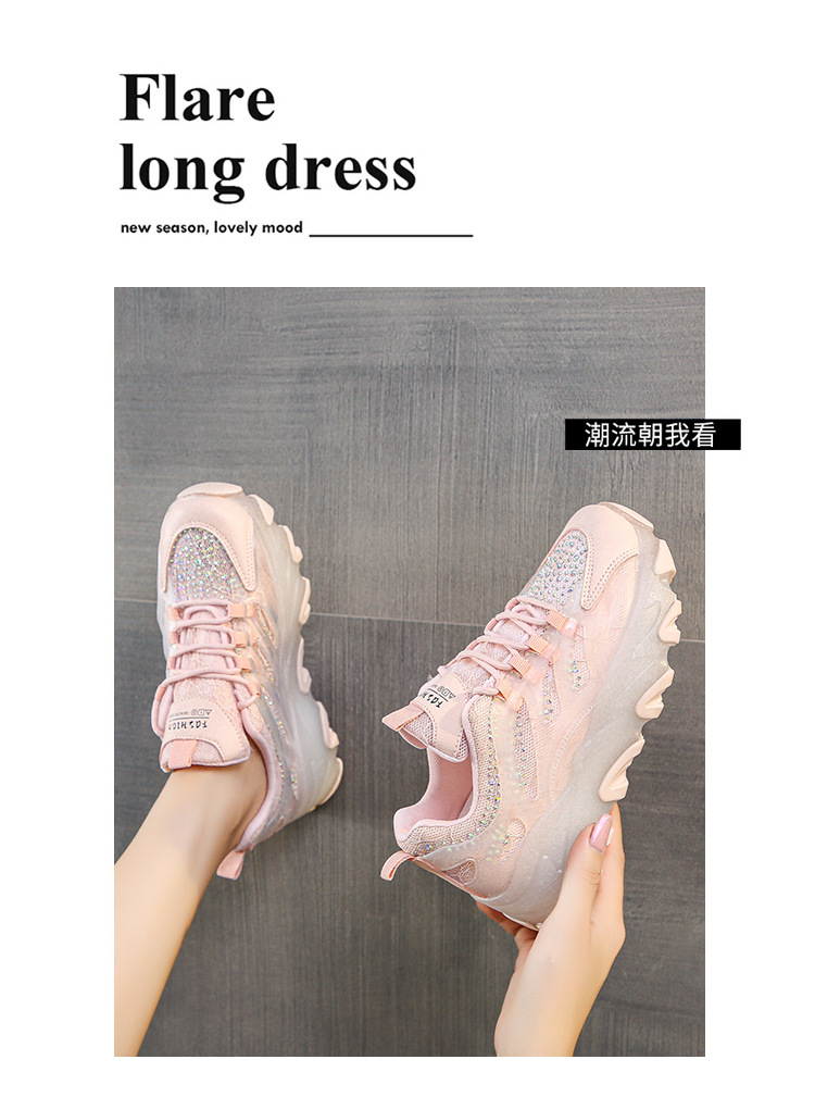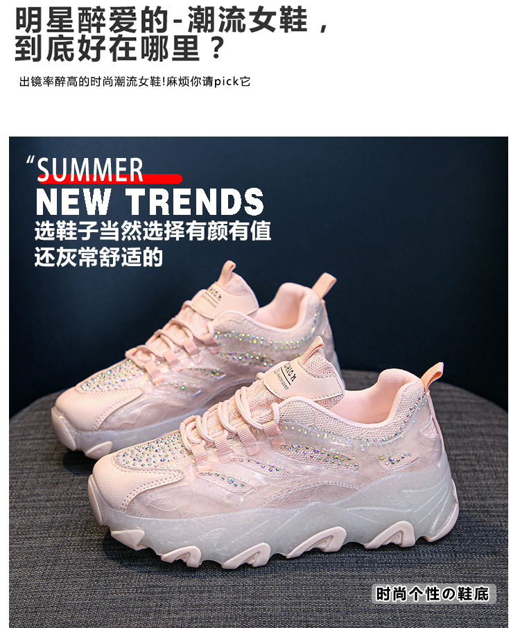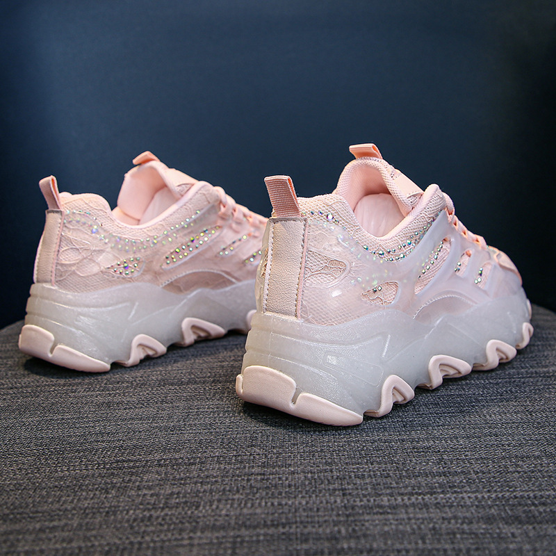 캐주얼 스포츠 메쉬 토레 신발 여성의 봄과 가을 새로운 2024 Rhinestone Jelly 하단 통기성 두꺼운 솔 증가 메쉬 신발스토어 가기