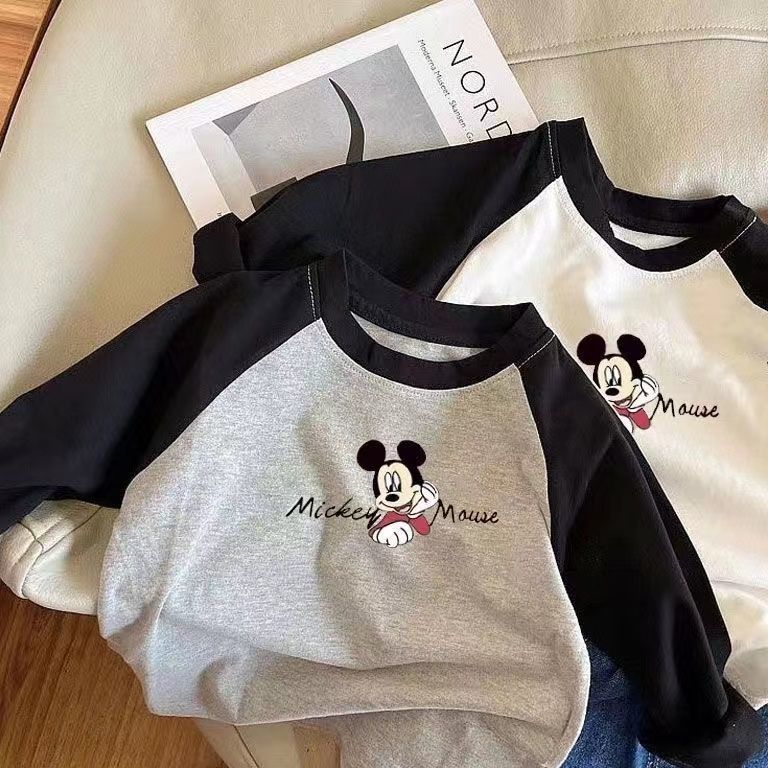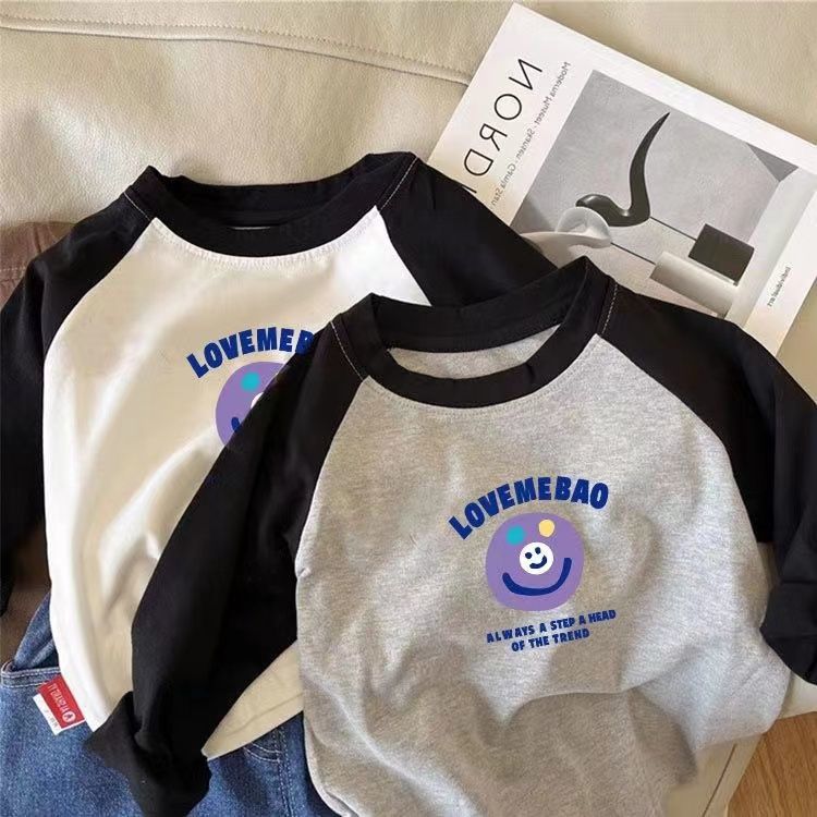 새로운 면 긴 소매 티셔츠 봄과 가을 아기 인쇄 T 기본 셔츠 소년 소녀를위한 세련된 유행 탑스토어 가기
