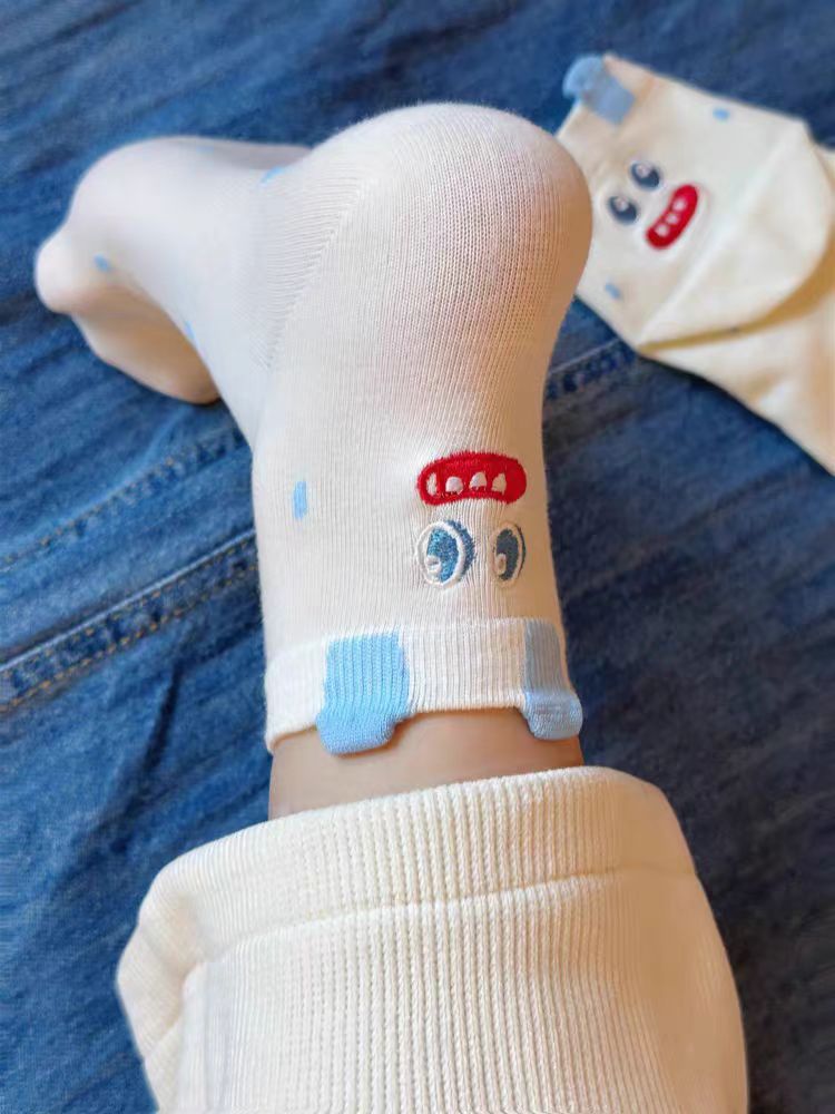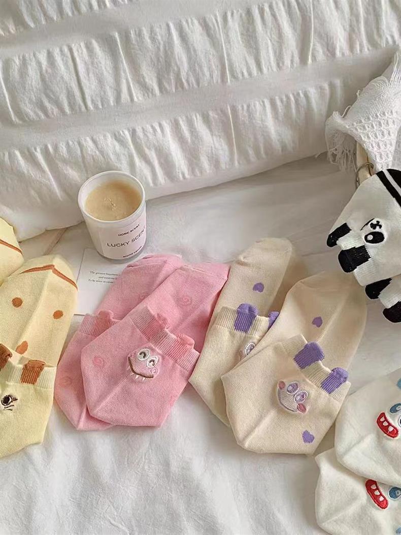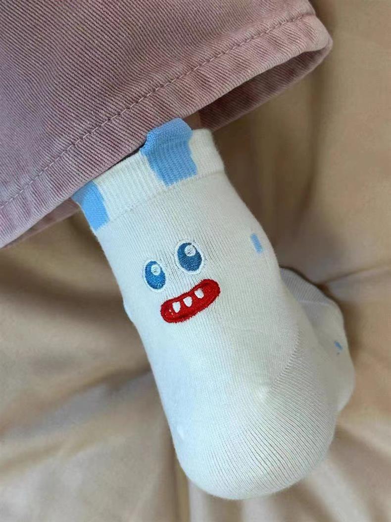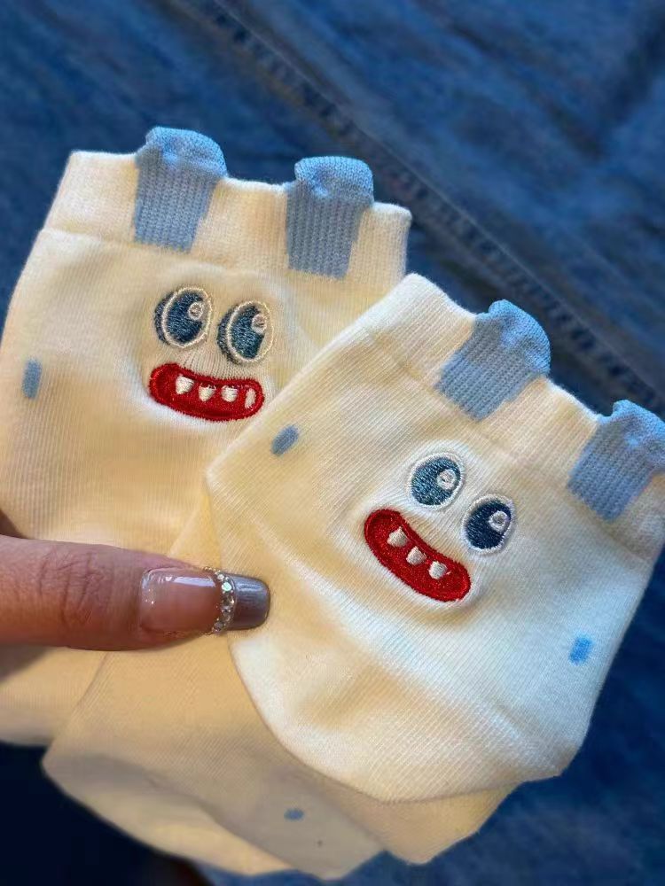 새로운 만화 이빨 괴물 양말 3 차원 귀 귀여운 소녀 분말 틈새 중형 양말 어린이 미끄럼 방지 학생 양말스토어 가기
