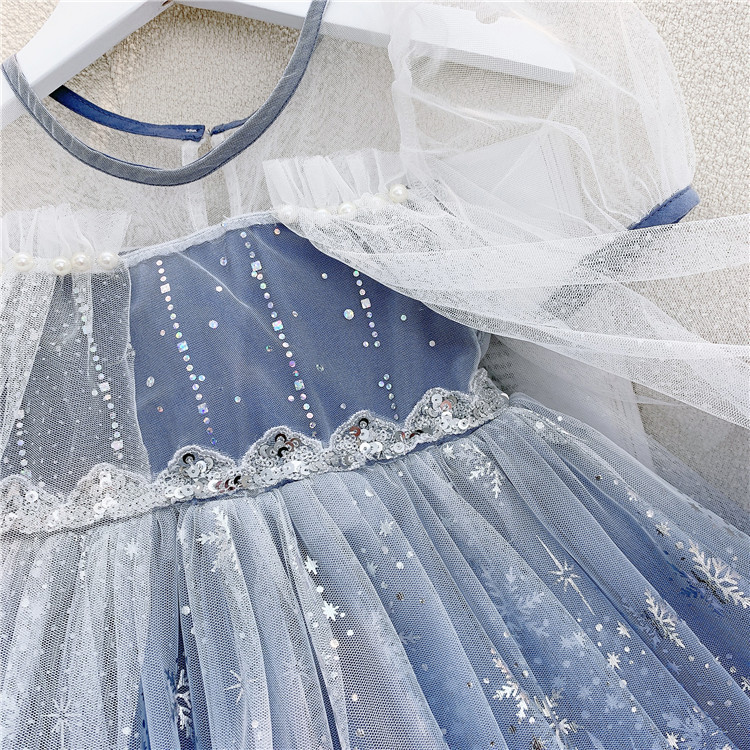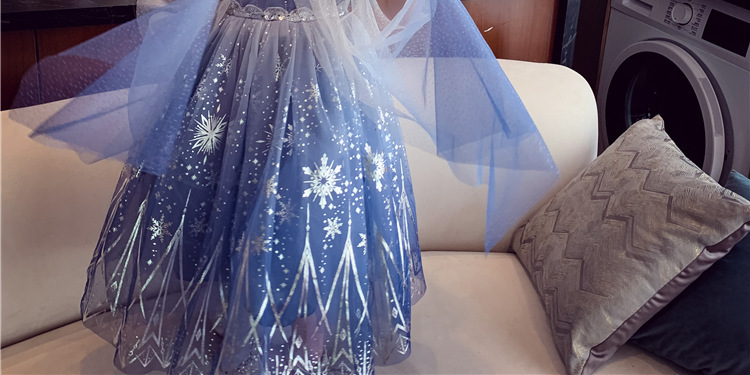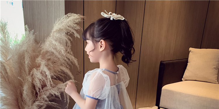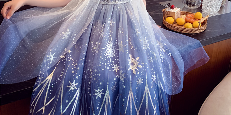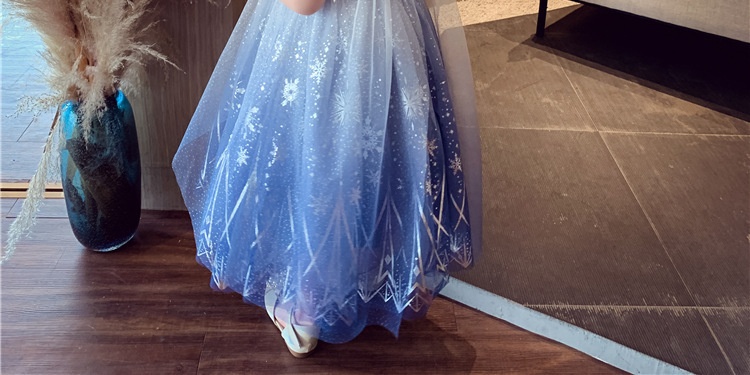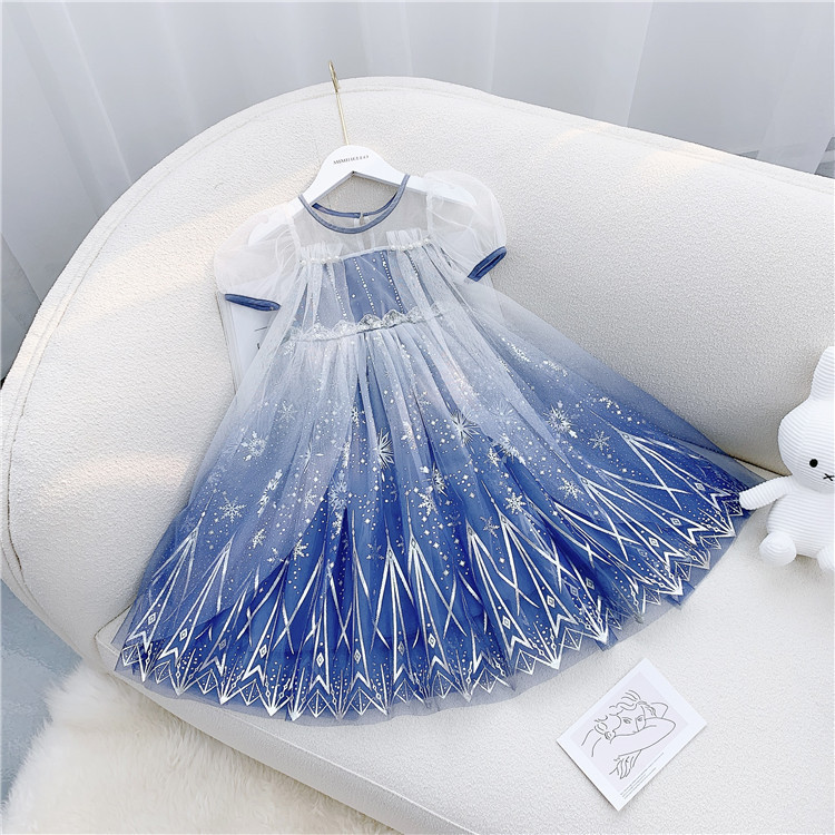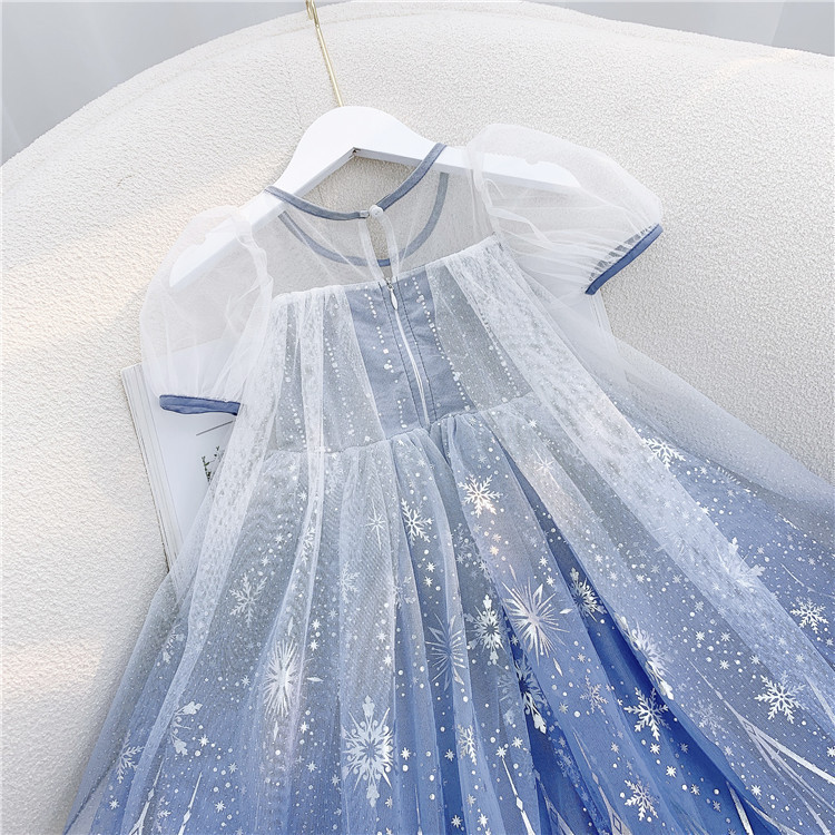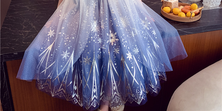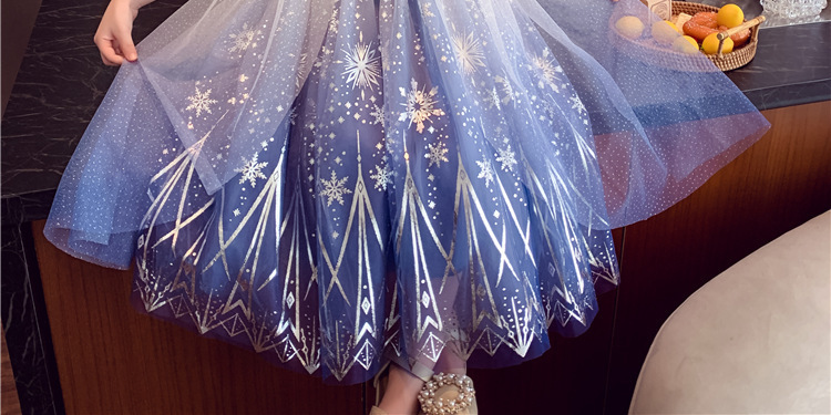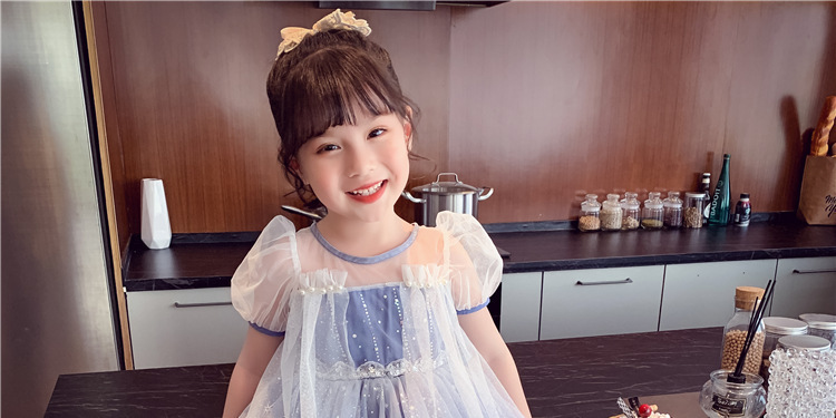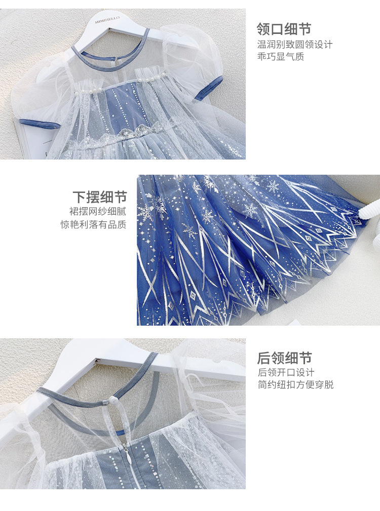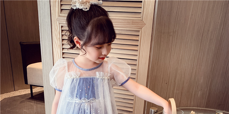 소녀 냉동 공주 아이샤 원피스 여름 원피스 2024 어린이 서양식 메쉬 퍼프 원피스 소녀의 가운스토어 가기