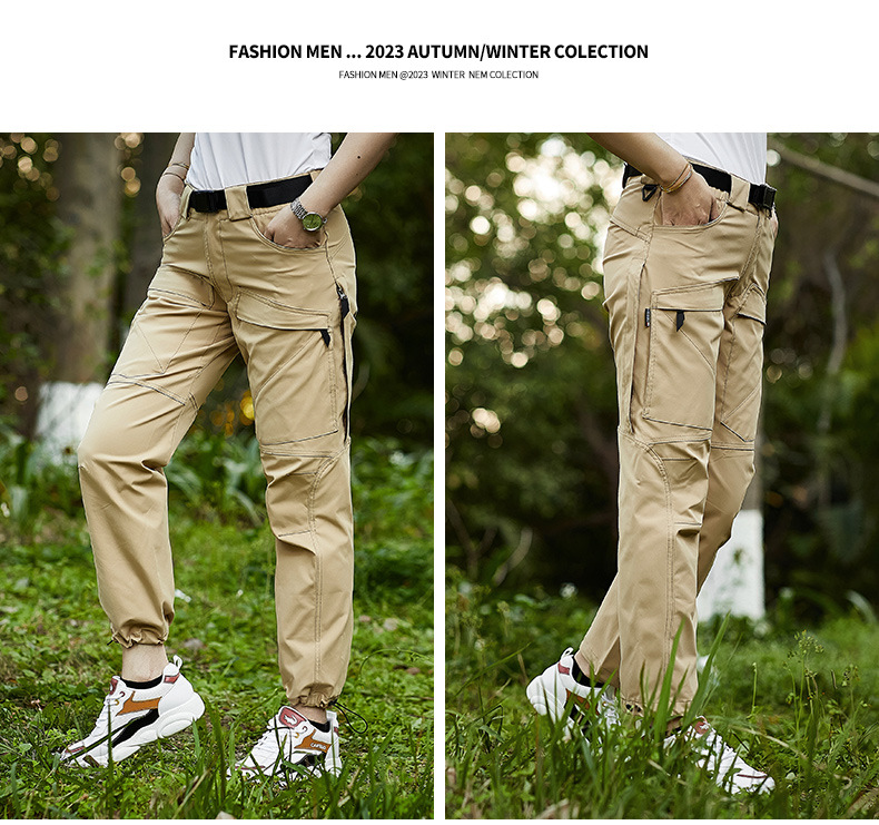야외 작업 바지 남성용 봄과 가을 빠른 건조 스포츠 캐주얼 바지 남성용 멀티 포켓 벨트 등산 바지스토어 가기
