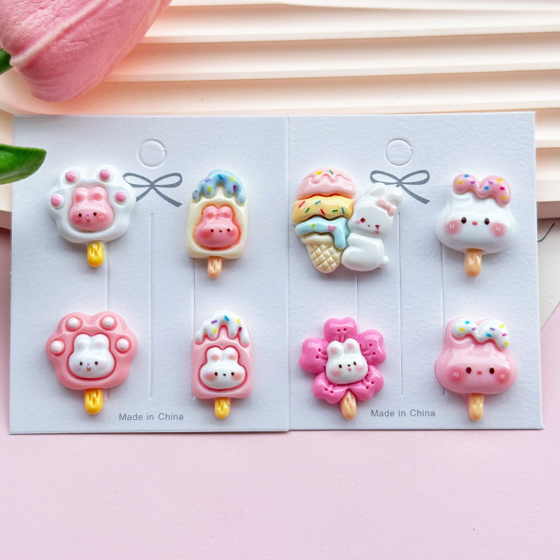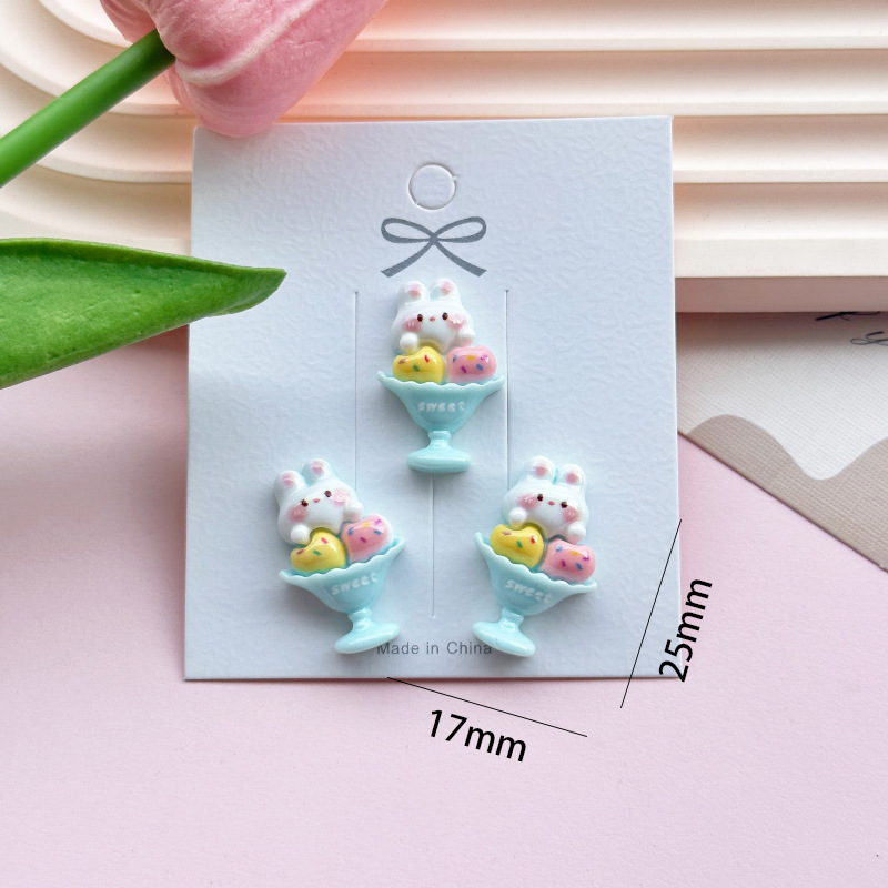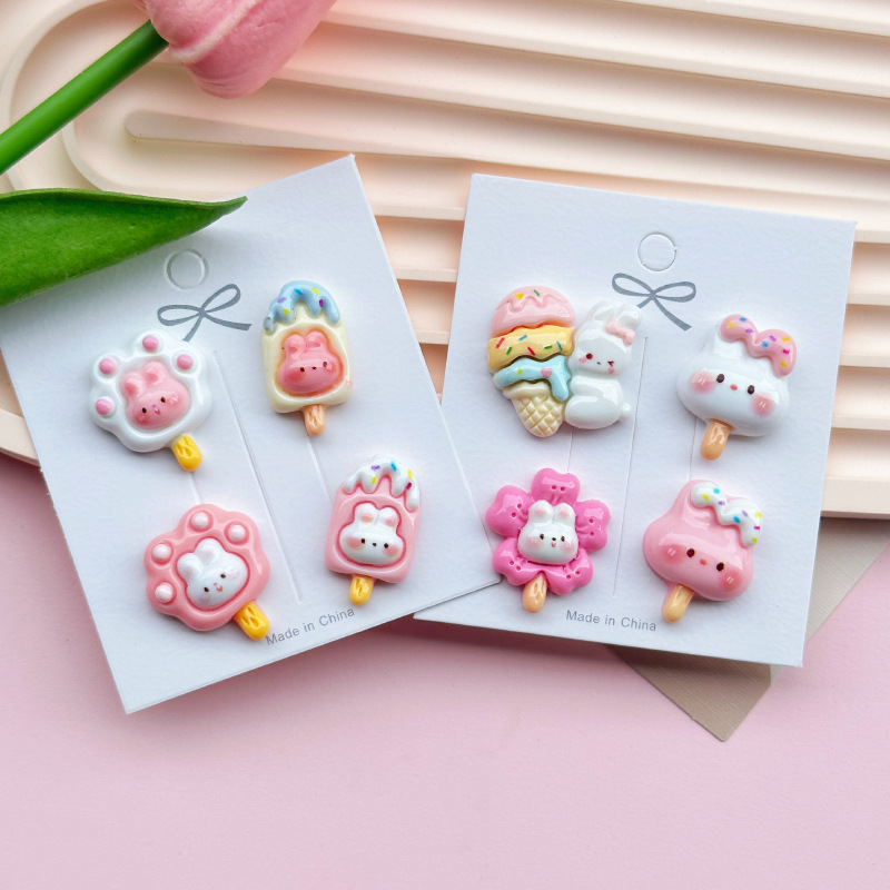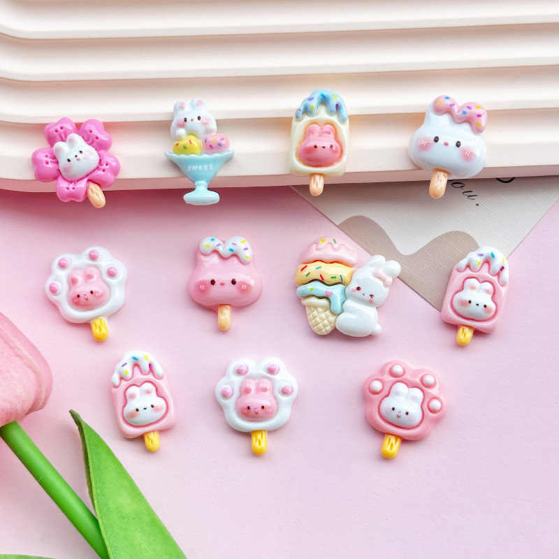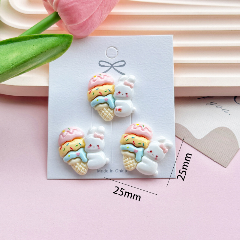 귀여운 작은 토끼 아이스크림 수지 DIY 액세서리 휴대 전화 쉘 패치 머리핀 헤어 액세서리 소재