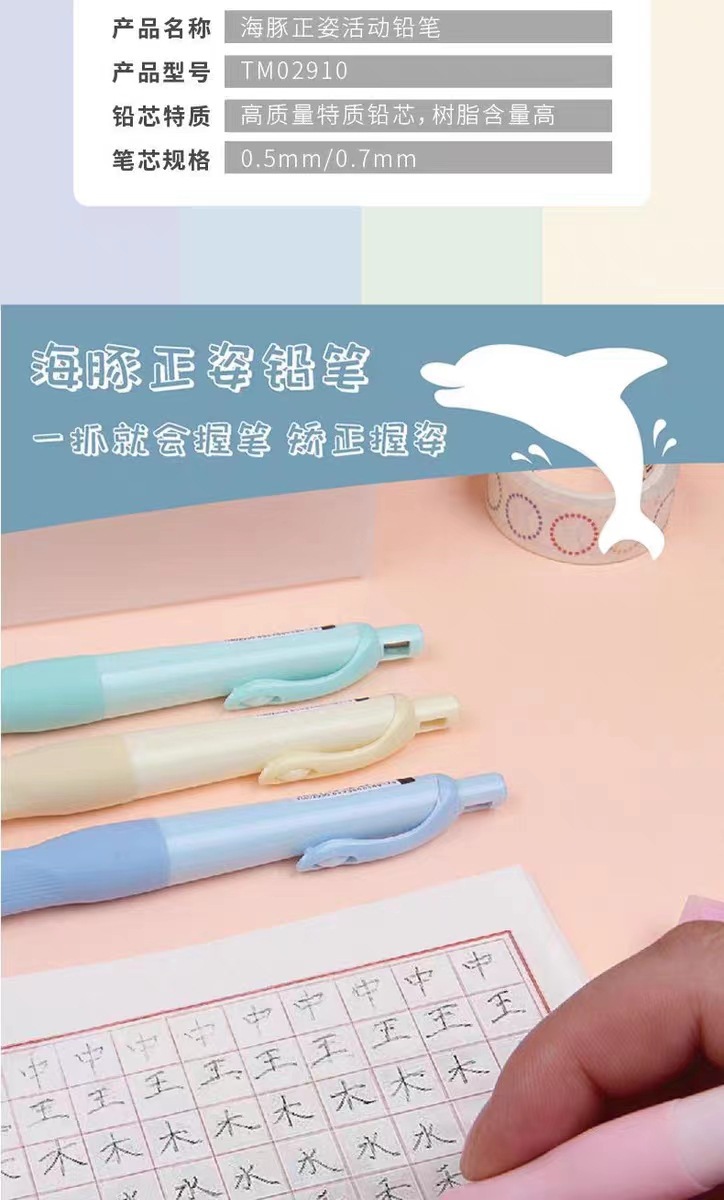 Tianzhuo 자동 연필 돌고래 포지티브 자세 펜 멀티 사양 두께 헤드 0.5/0.7/2.0 초등학생 교정 그립 펜