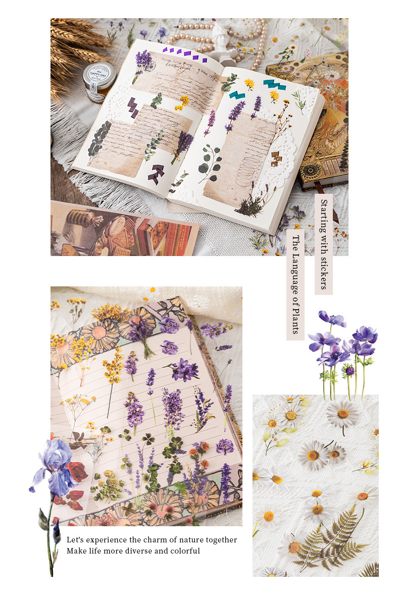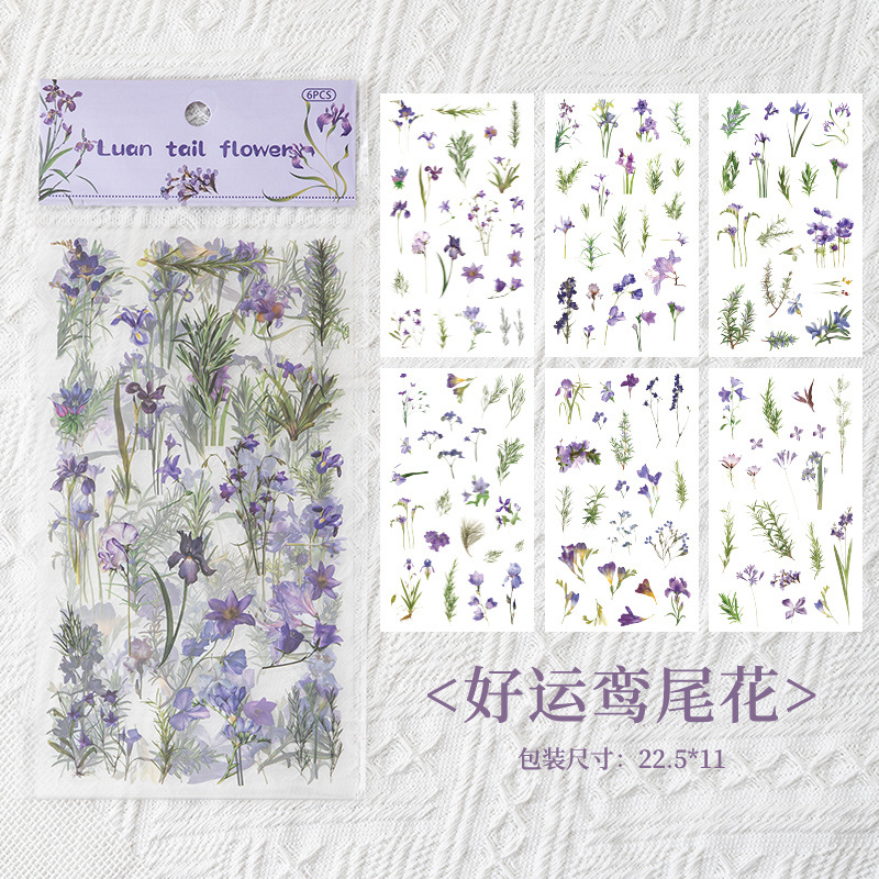 식물 꽃 스티커 팩 4 계절 꽃 언어 애완 동물 절단 손 계정 재료 스티커 소녀 장식 손 계정 스티커