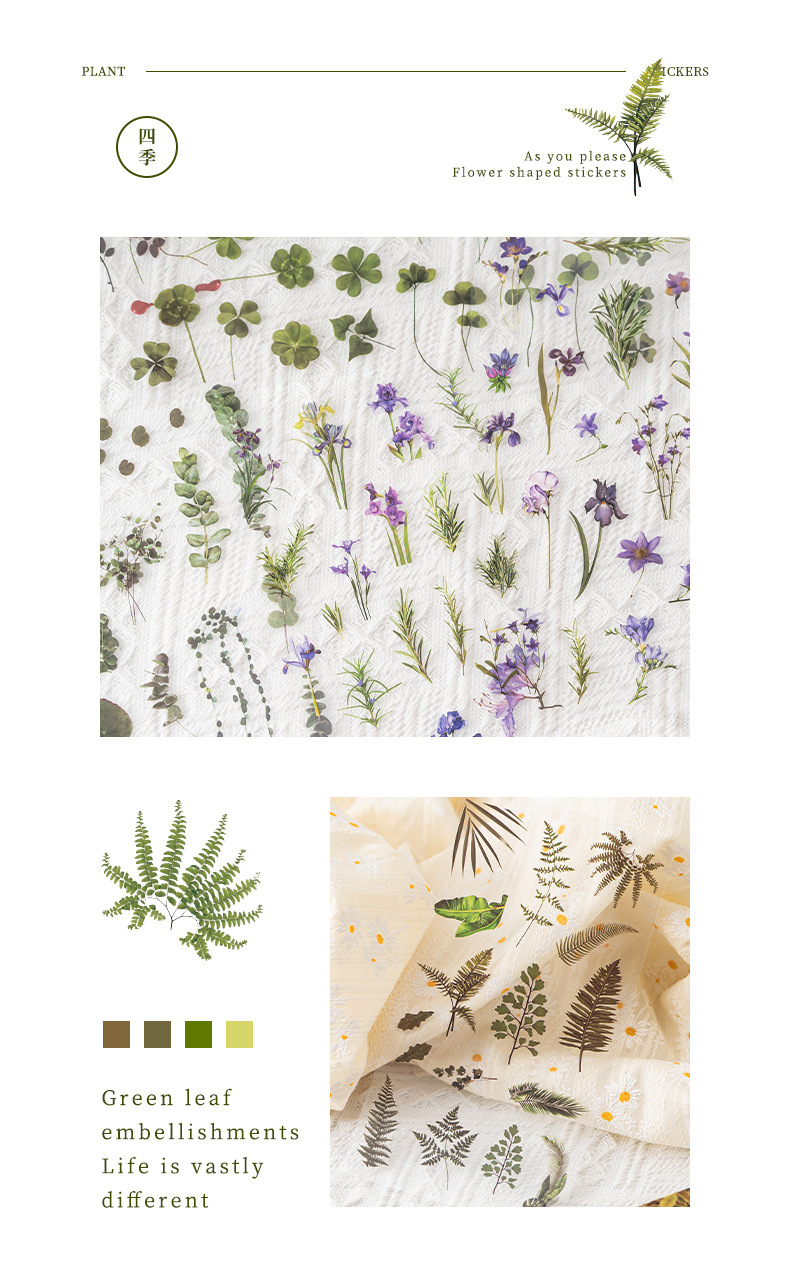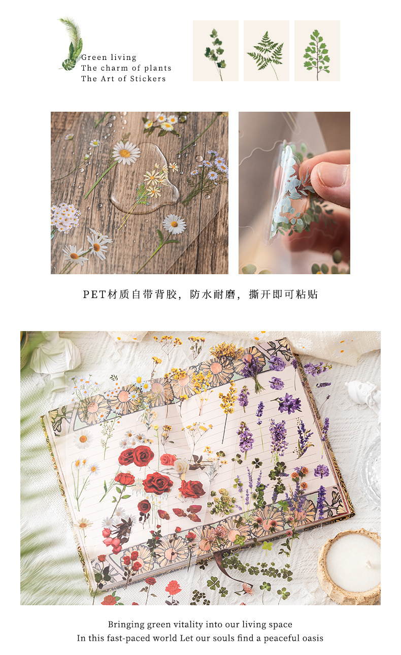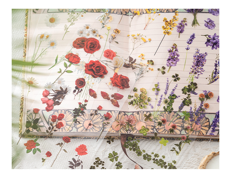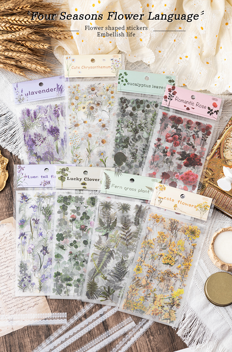 식물 꽃 스티커 팩 4 계절 꽃 언어 애완 동물 절단 손 계정 재료 스티커 소녀 장식 손 계정 스티커스토어 가기