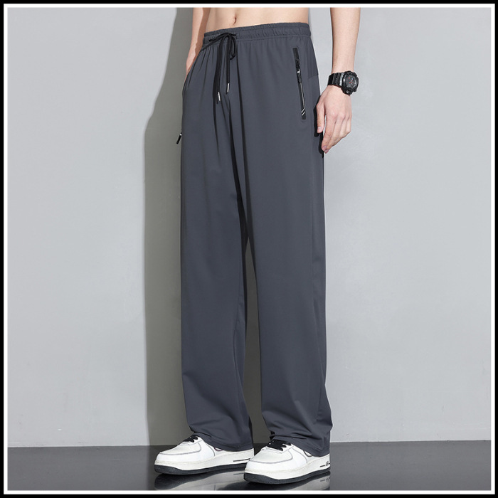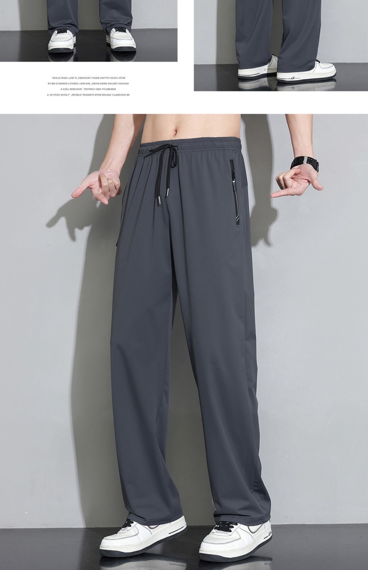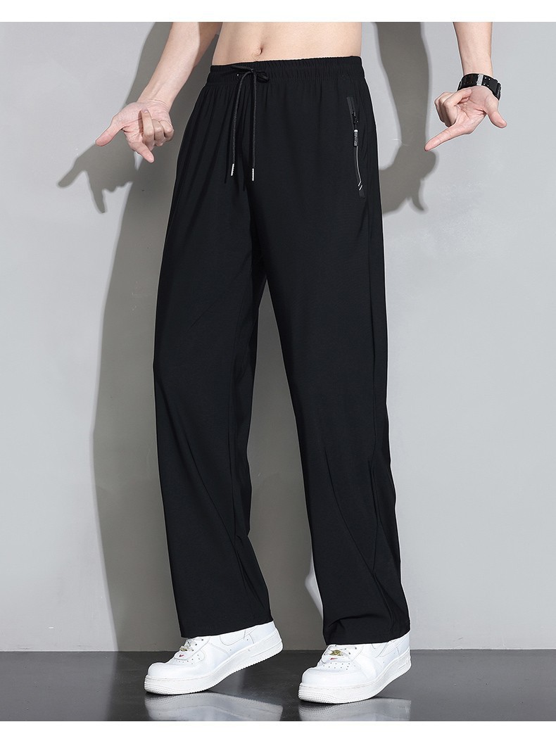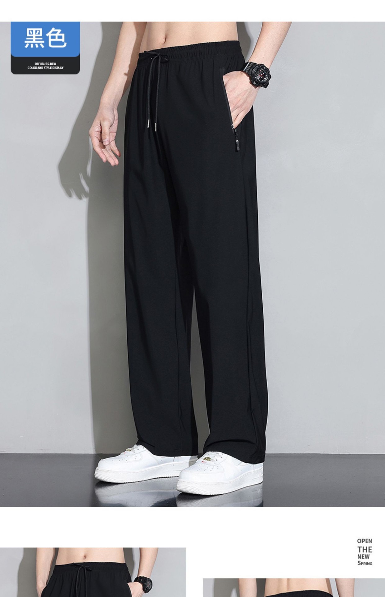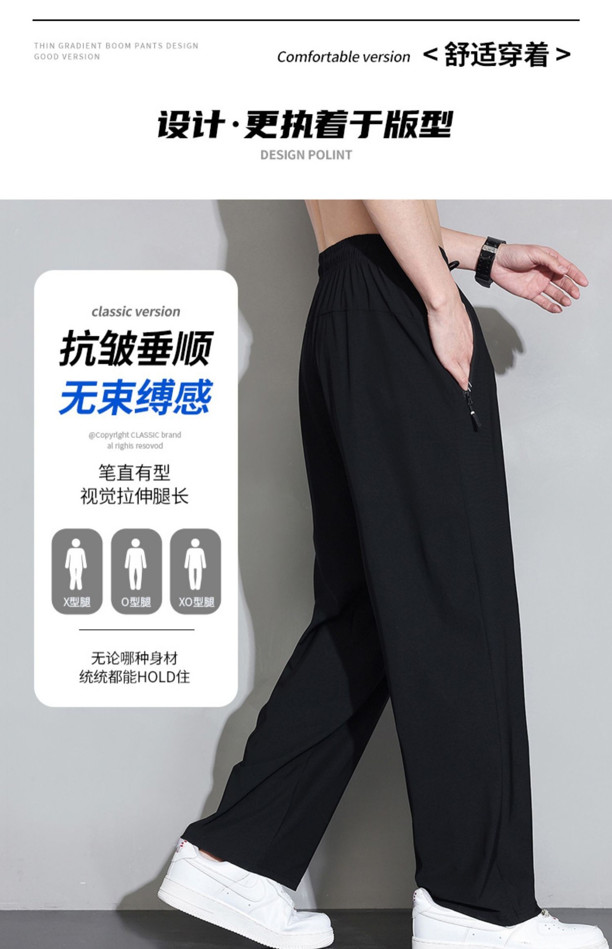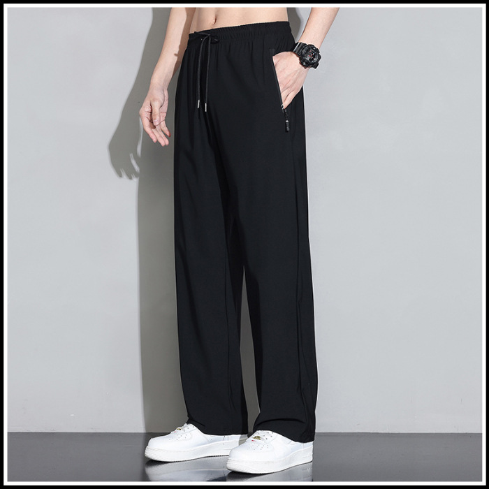 아이스 실크 바지 남자 여름 얇은 느슨한 유행 브랜드 스포츠 와이드 레그 바지는 스트레이트 바지 블랙 캐주얼 바지