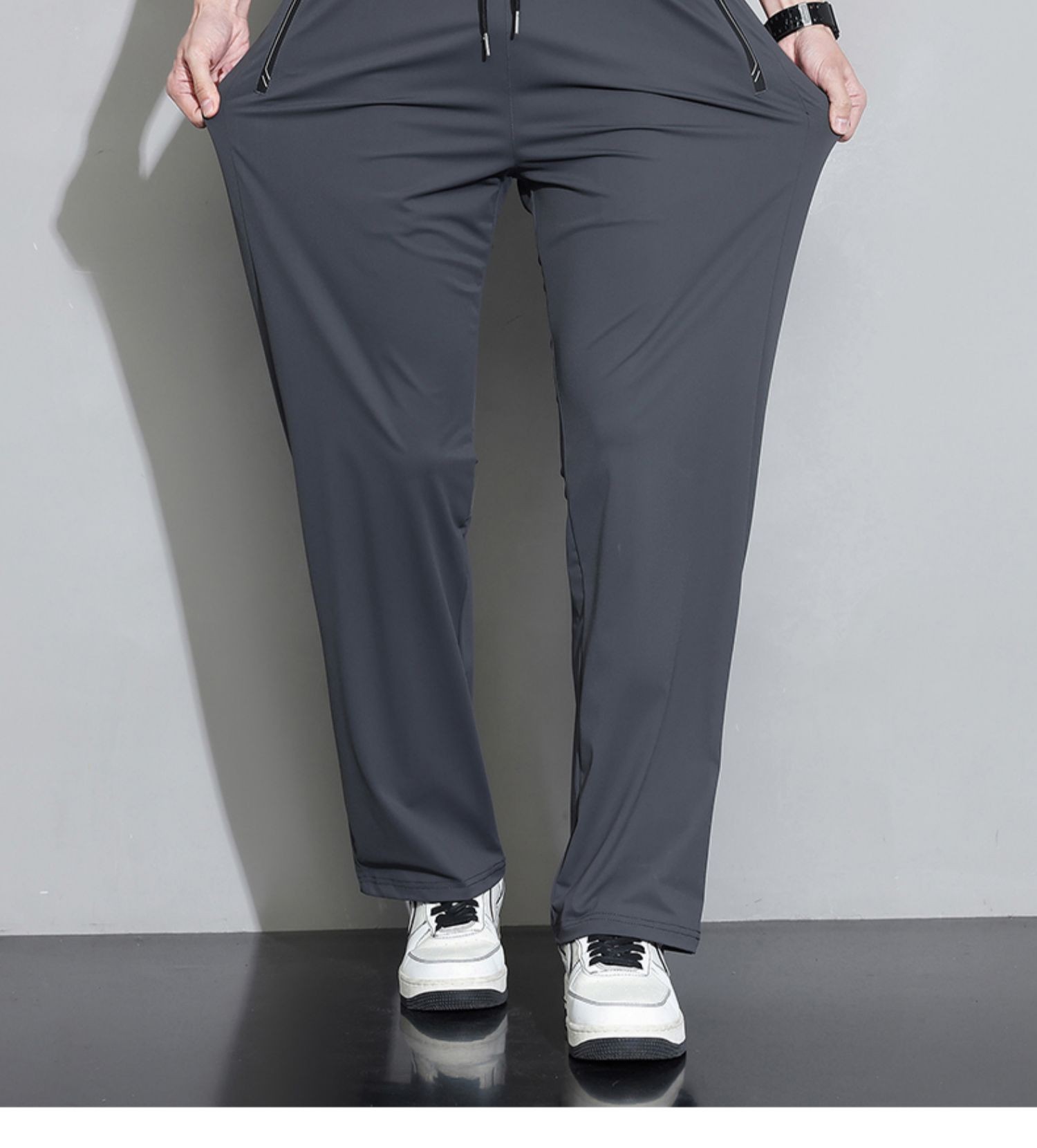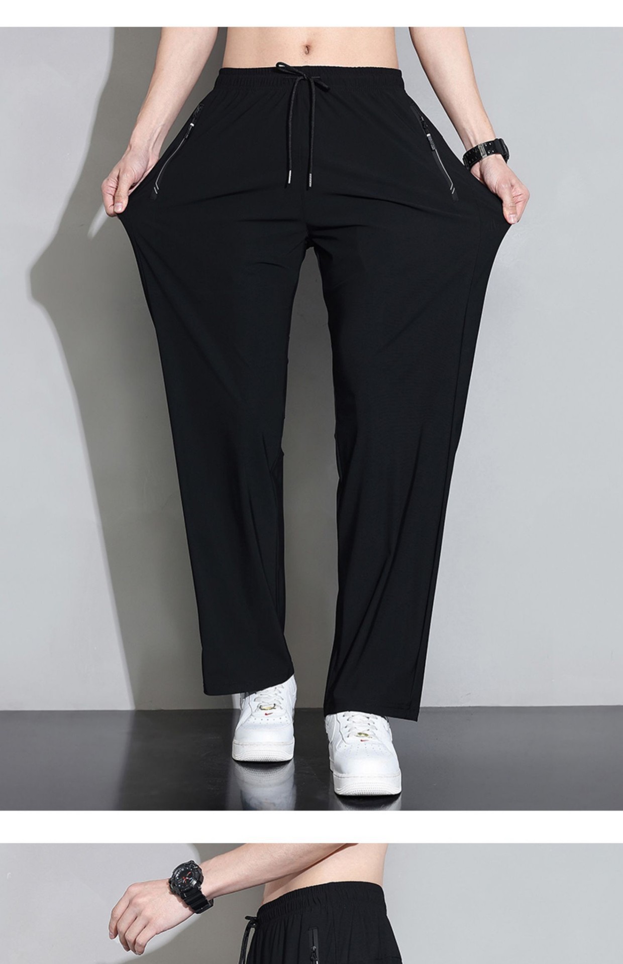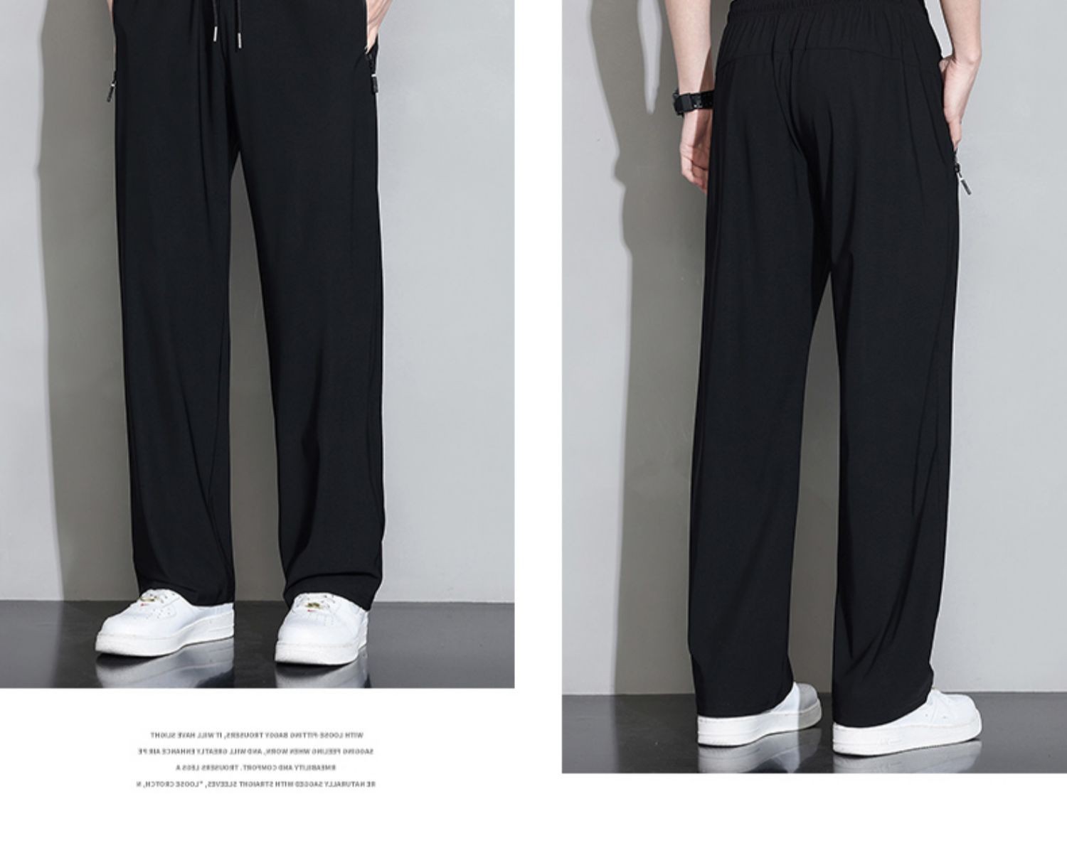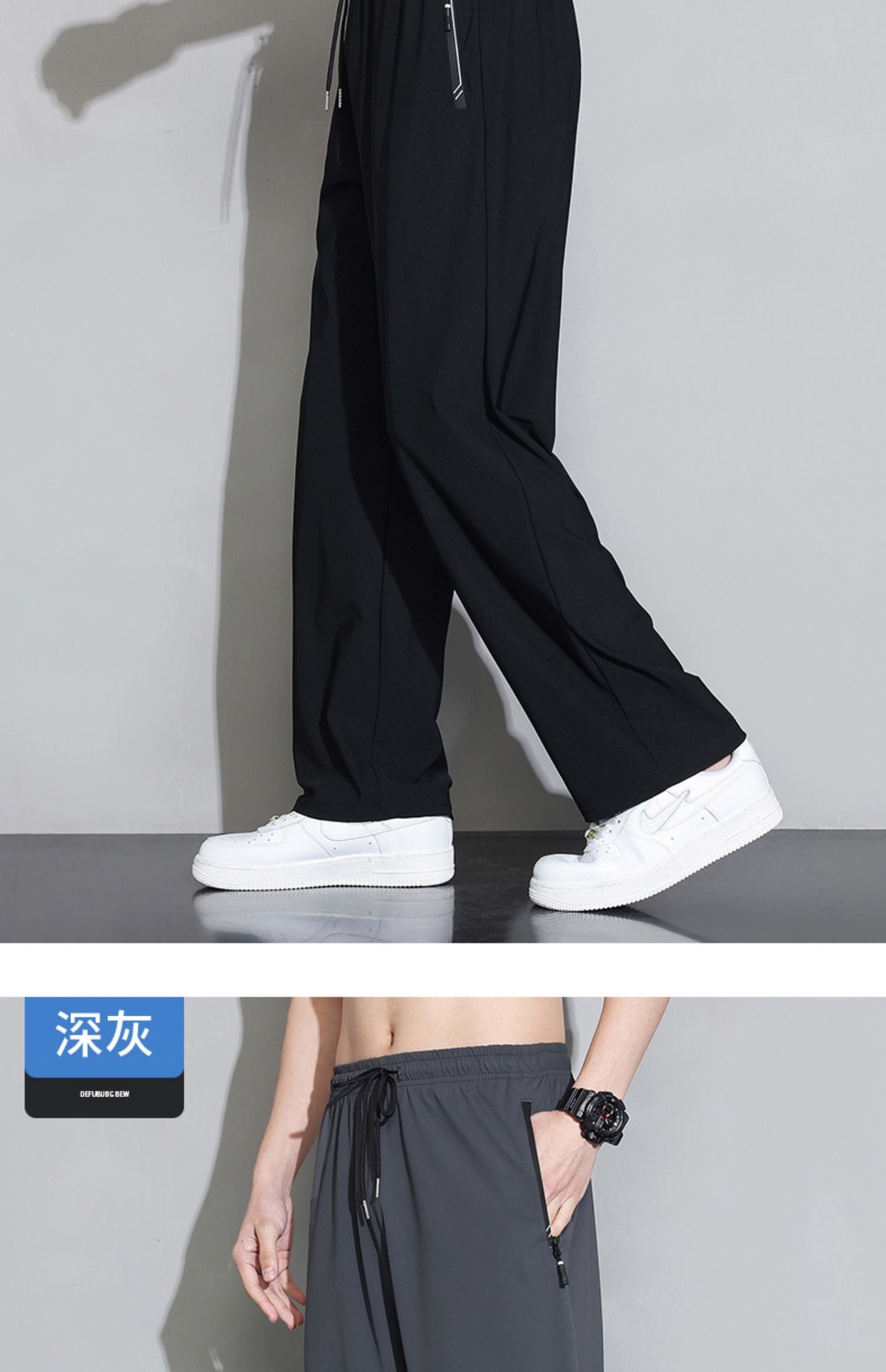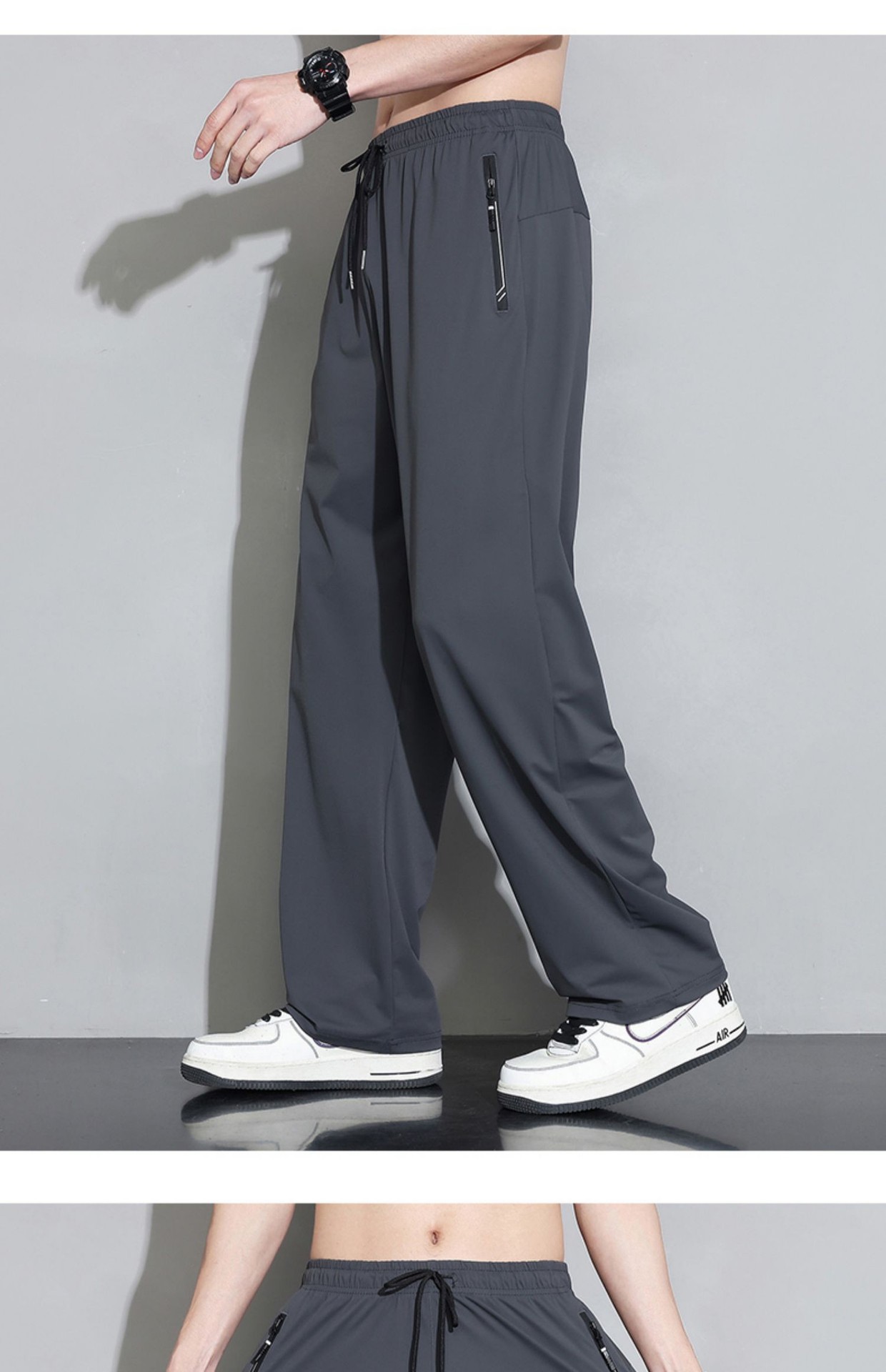 아이스 실크 바지 남자 여름 얇은 느슨한 유행 브랜드 스포츠 와이드 레그 바지는 스트레이트 바지 블랙 캐주얼 바지