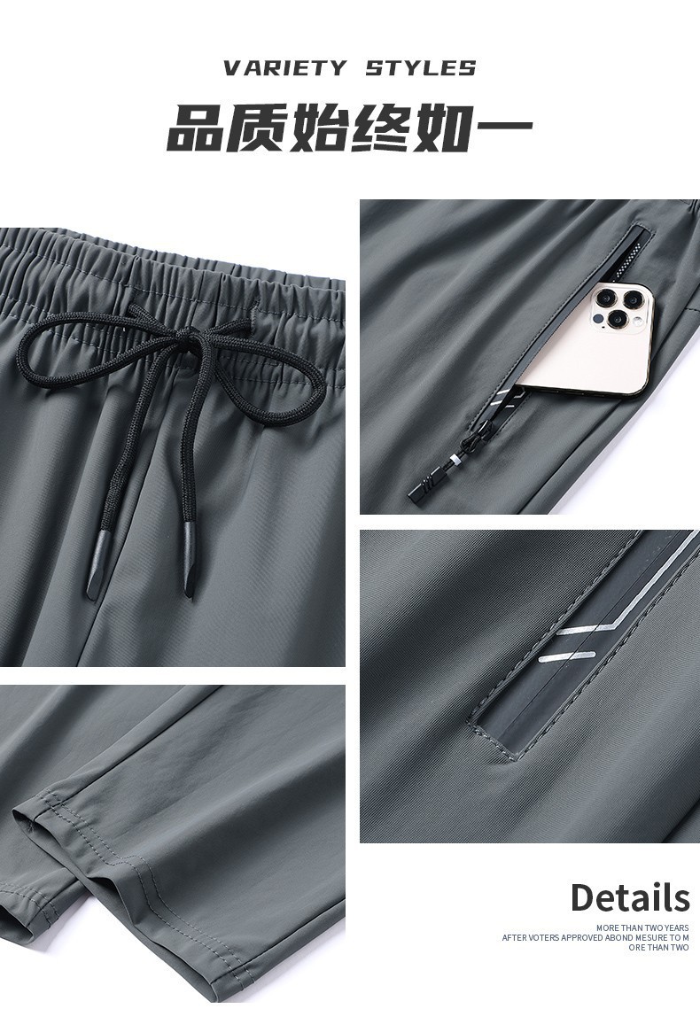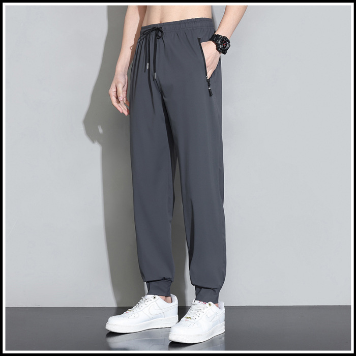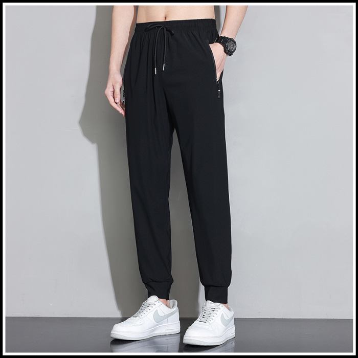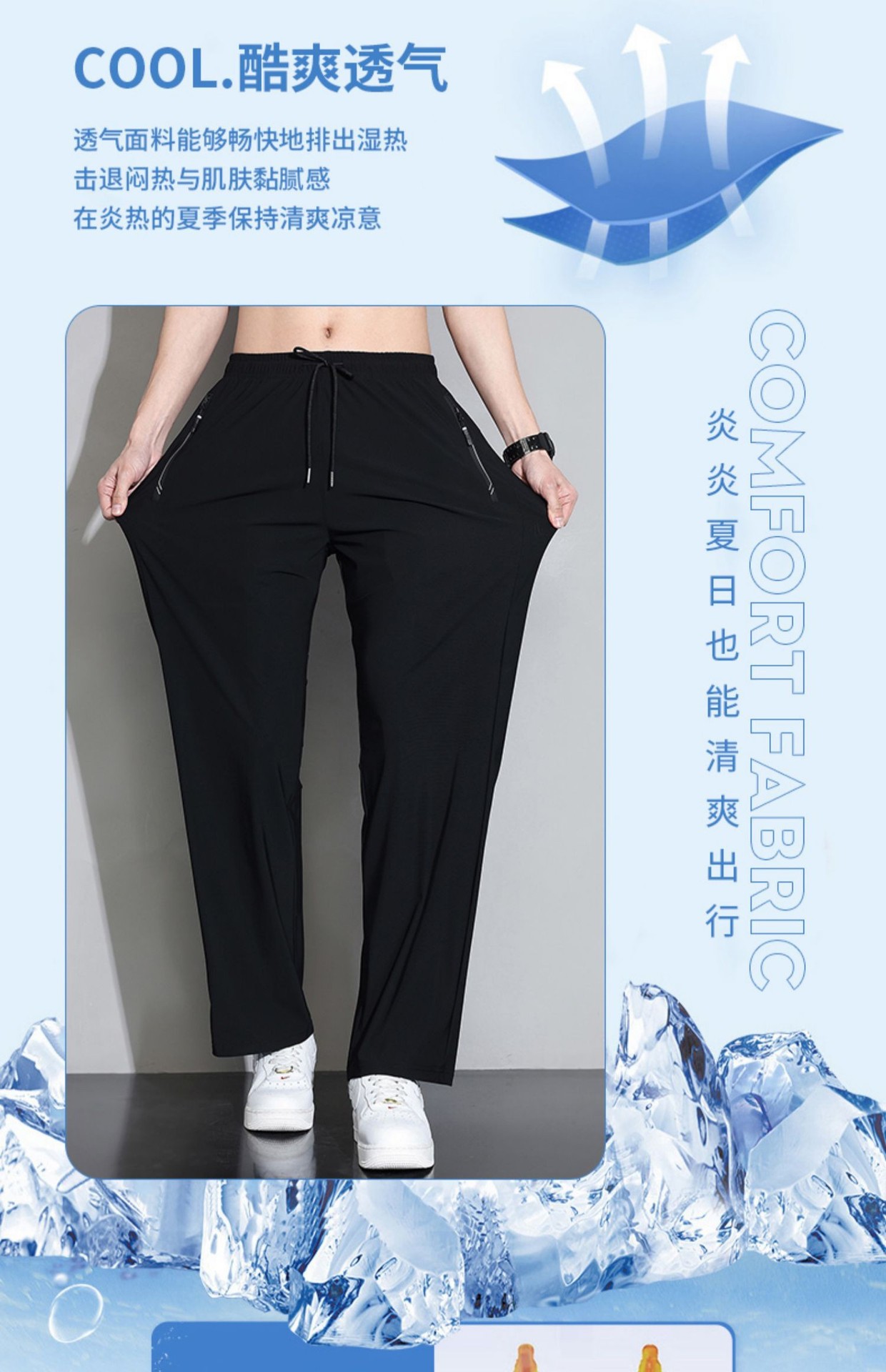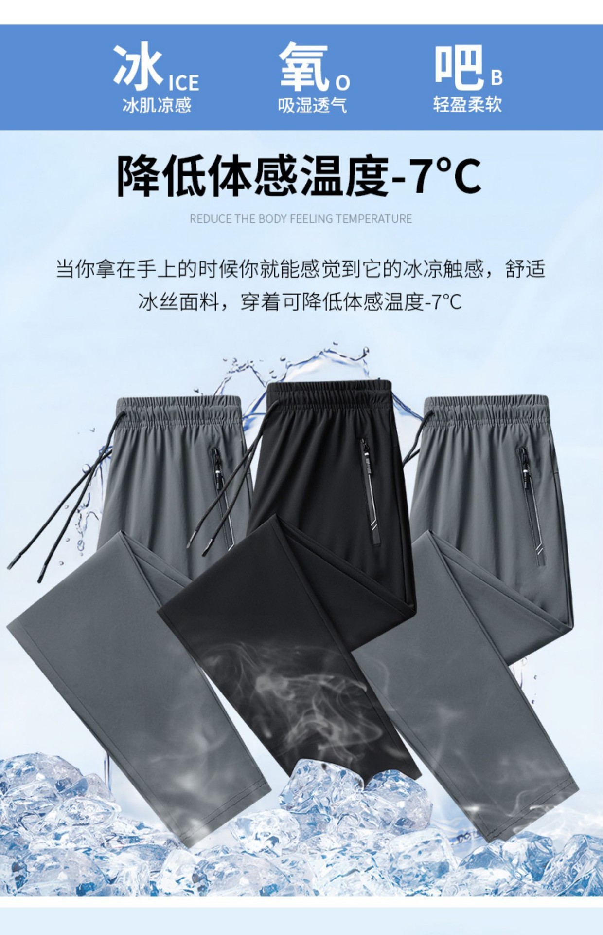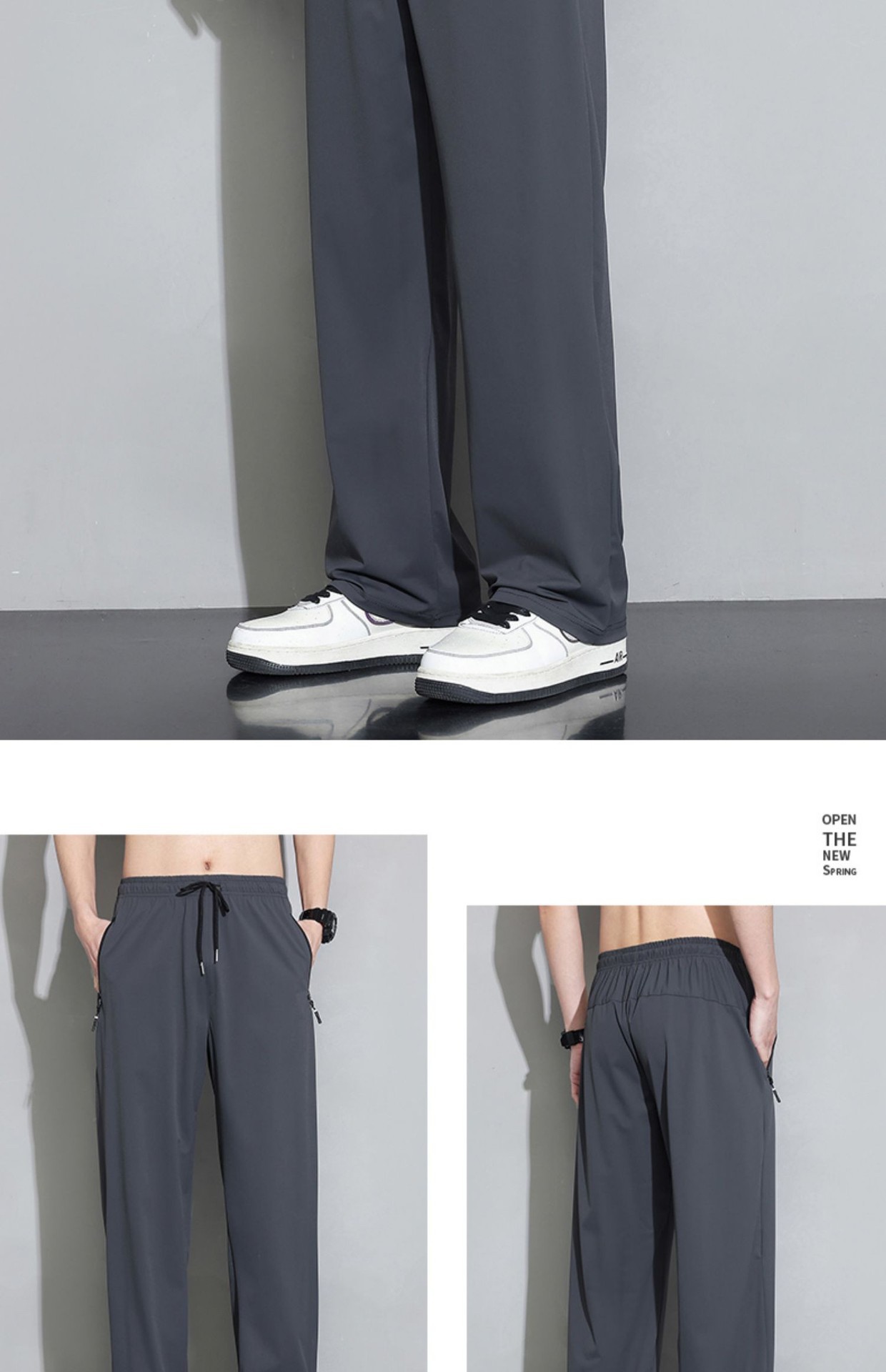 아이스 실크 바지 남자 여름 얇은 느슨한 유행 브랜드 스포츠 와이드 레그 바지는 스트레이트 바지 블랙 캐주얼 바지