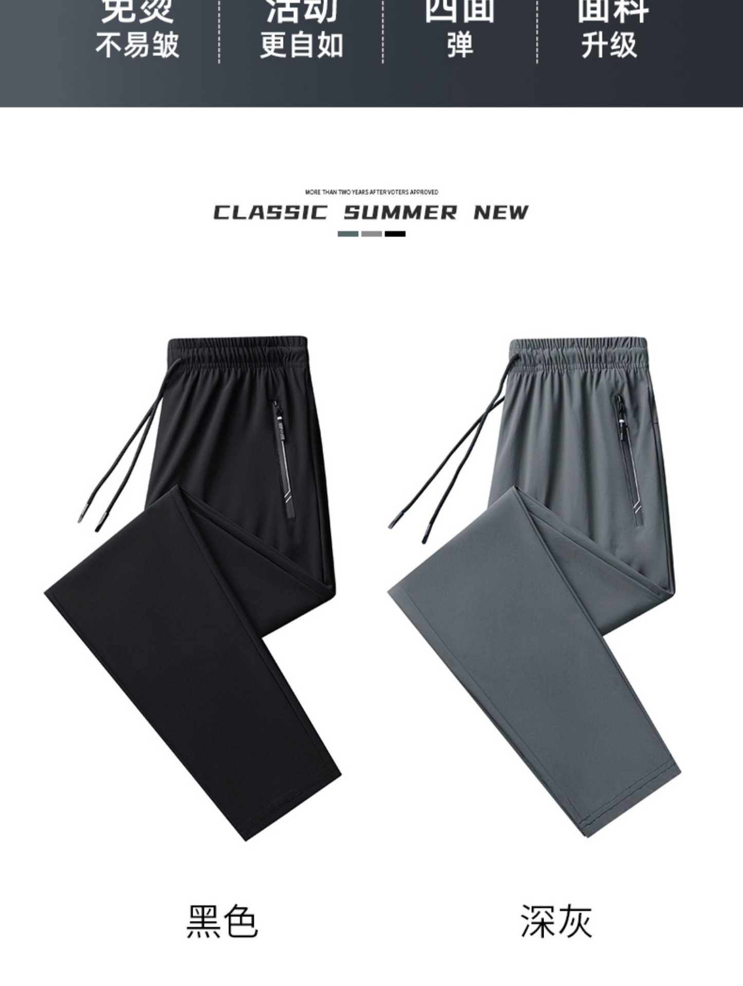 아이스 실크 바지 남자 여름 얇은 느슨한 유행 브랜드 스포츠 와이드 레그 바지는 스트레이트 바지 블랙 캐주얼 바지스토어 가기