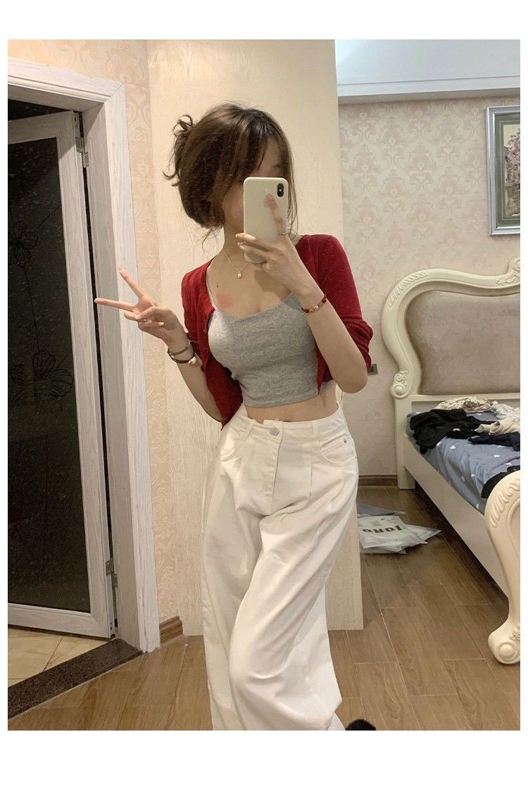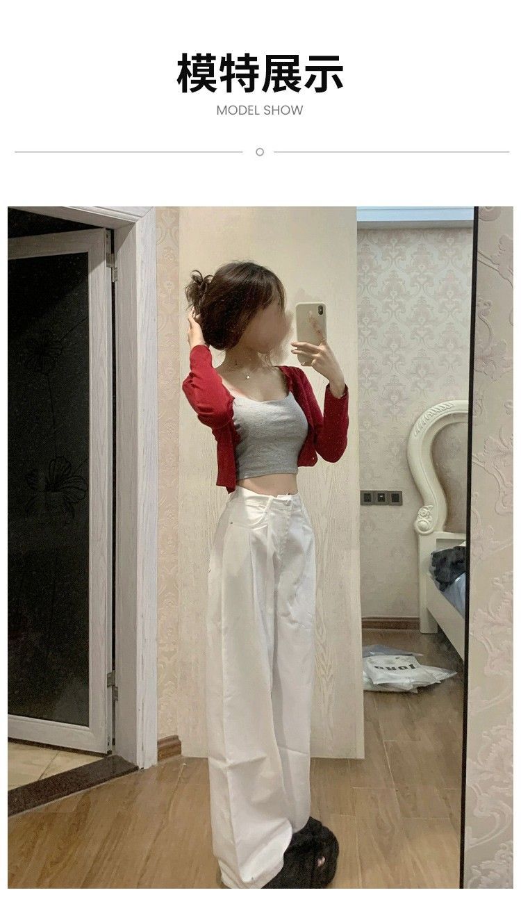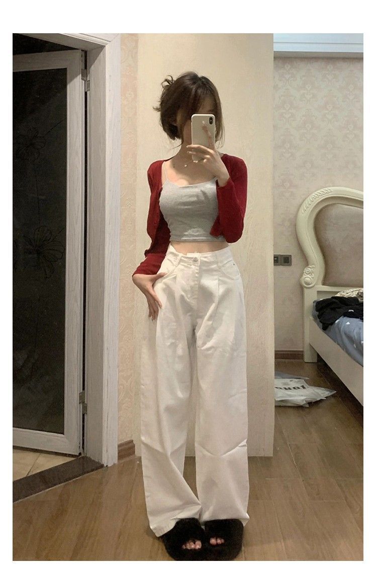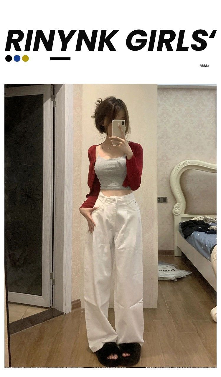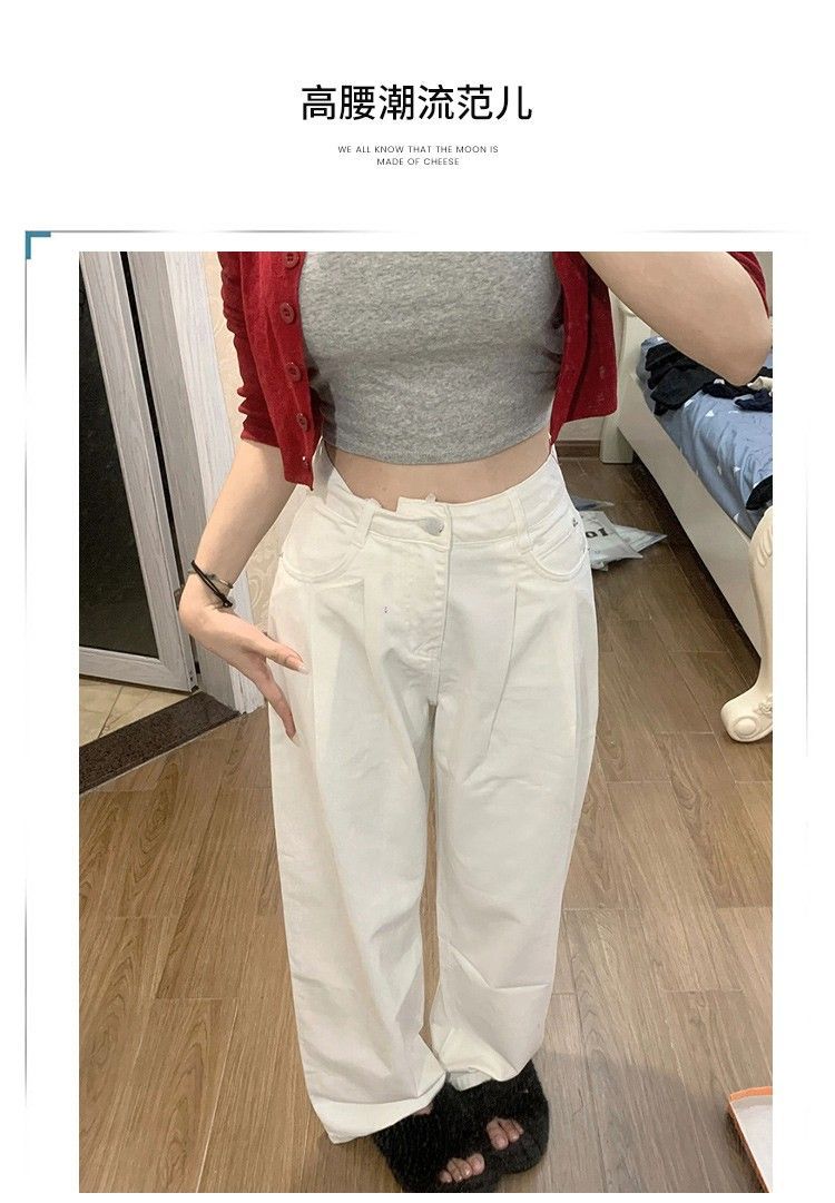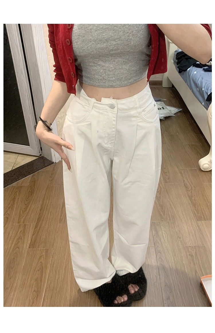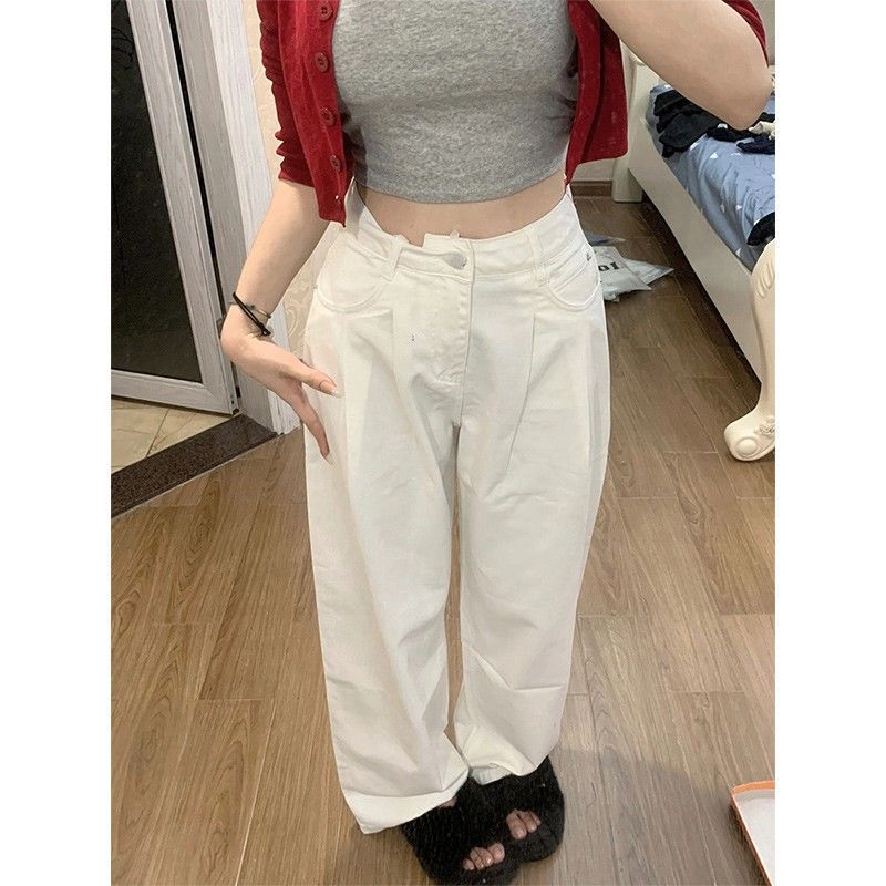 흰색 주름 디자인 넓은 다리 청바지 여성의 2024 폭발성 느슨한 슬림 핏 통근 게으른 바람에 드레이프 바지스토어 가기