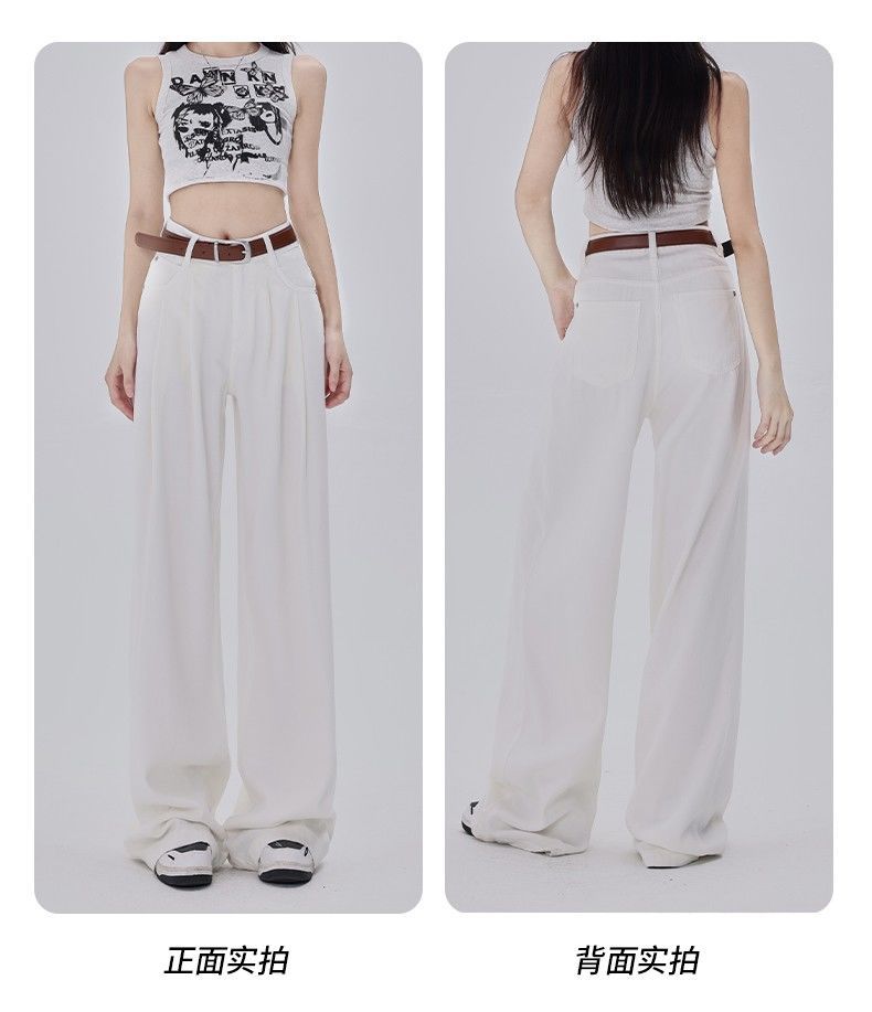 흰색 주름 디자인 넓은 다리 청바지 여성의 2024 폭발성 느슨한 슬림 핏 통근 게으른 바람에 드레이프 바지