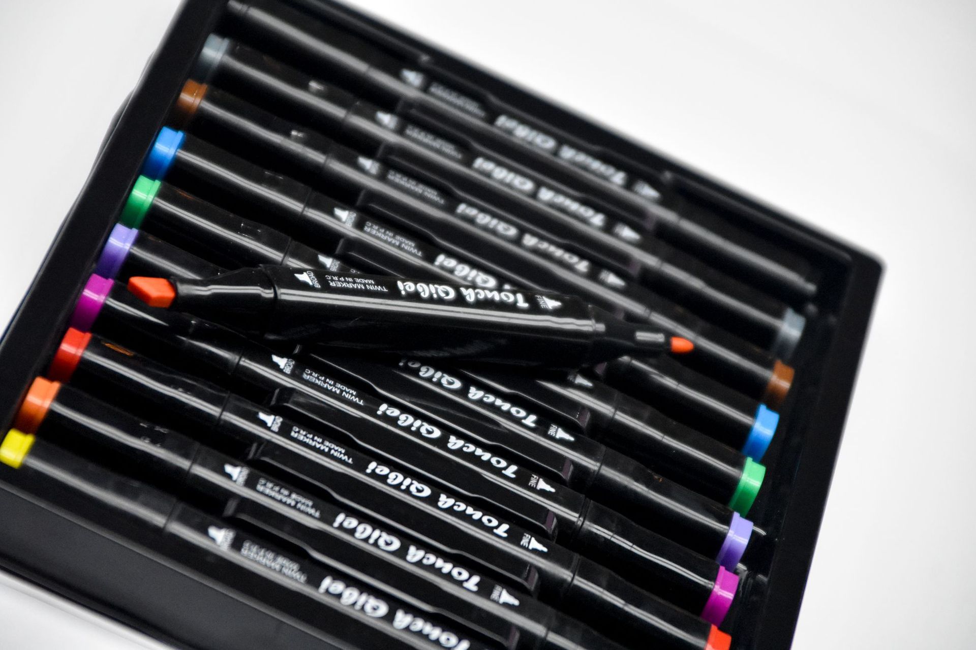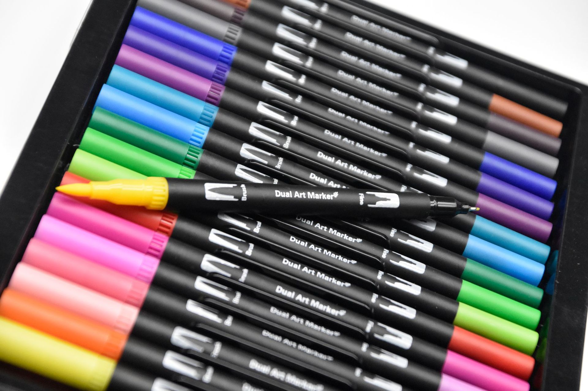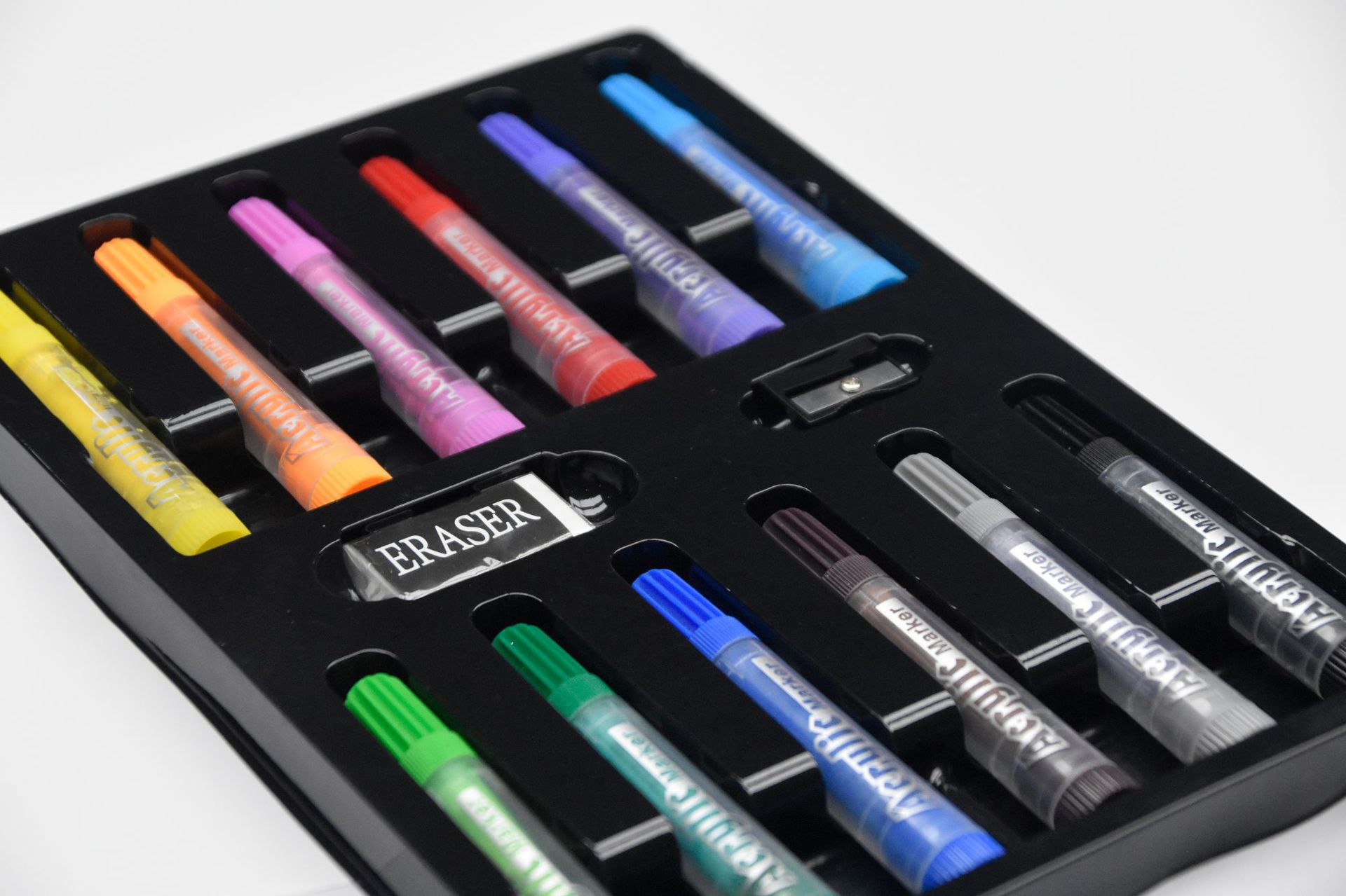 24色彩铅,8色油画棒,1块橡皮,1个卷笔刀,10色炫彩棒,10色马克笔,12色丙烯马克笔,20色双头勾线笔,24色粉饼,1个调色盘,2支描笔,20页绘画本