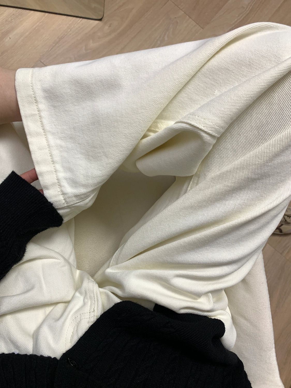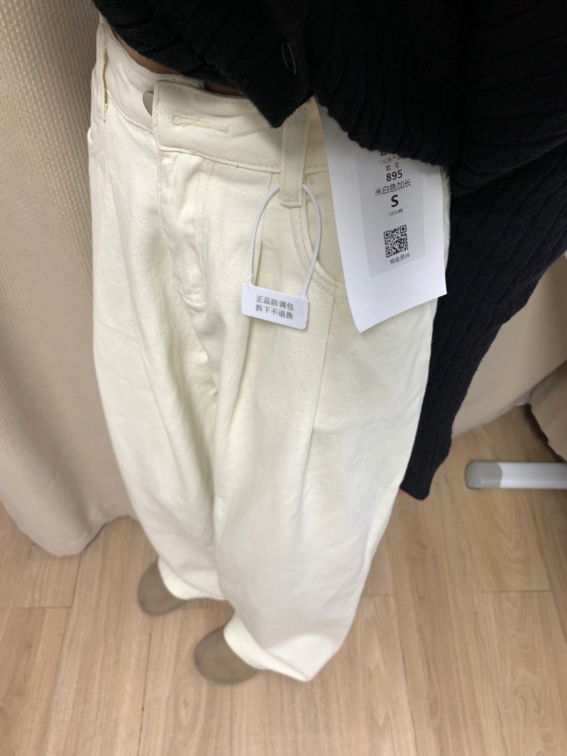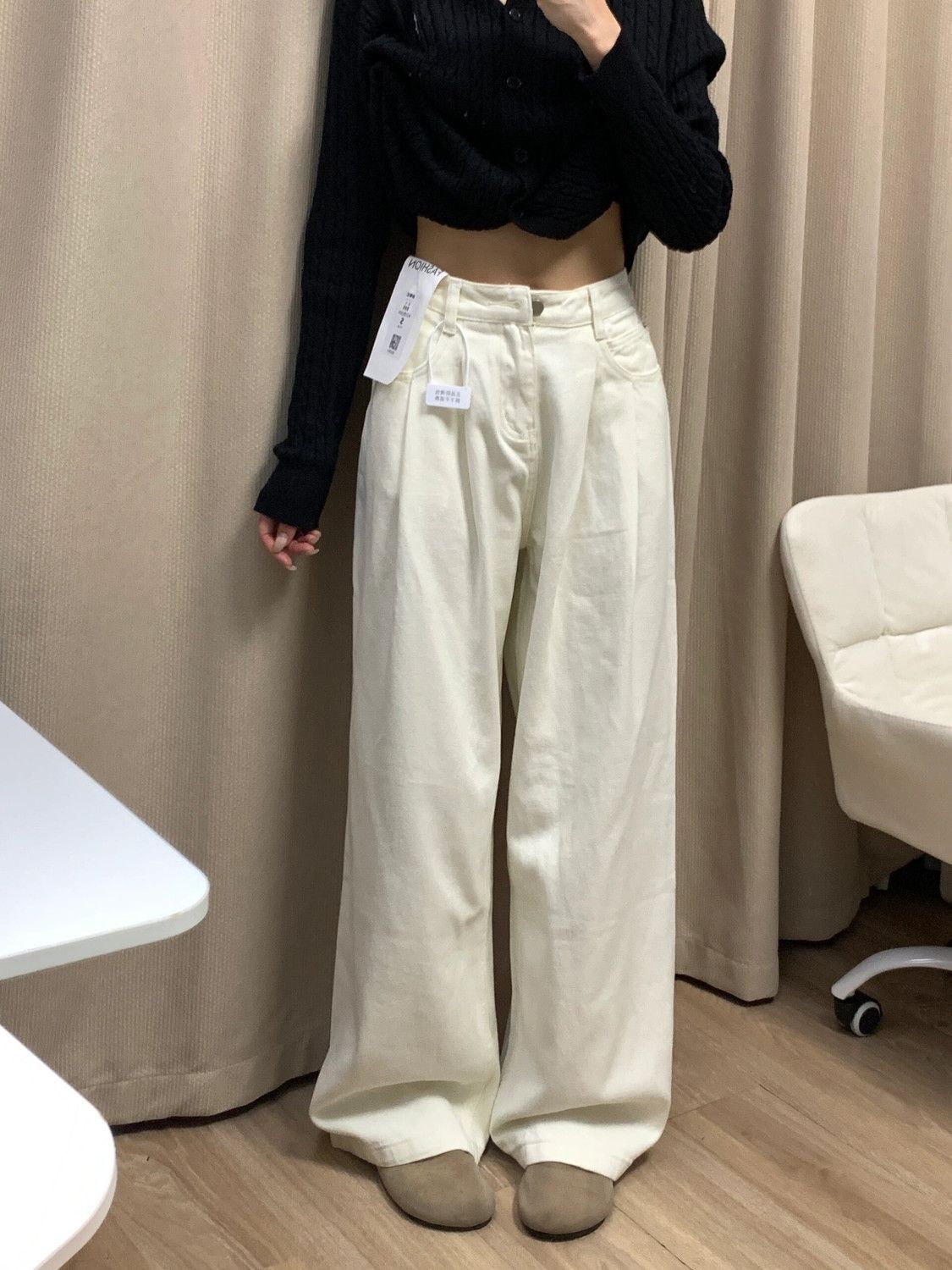 디자인 화이트 청바지 2024 새로운 여성의 여름 얇은 좁은 주름 직선 다리 넓은 다리 바지스토어 가기