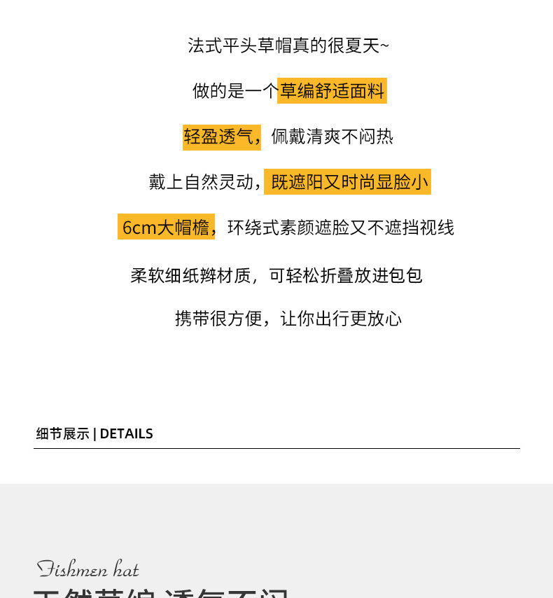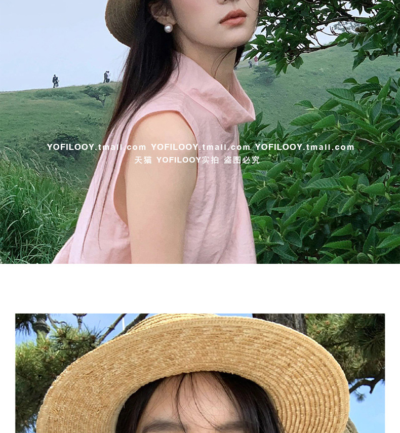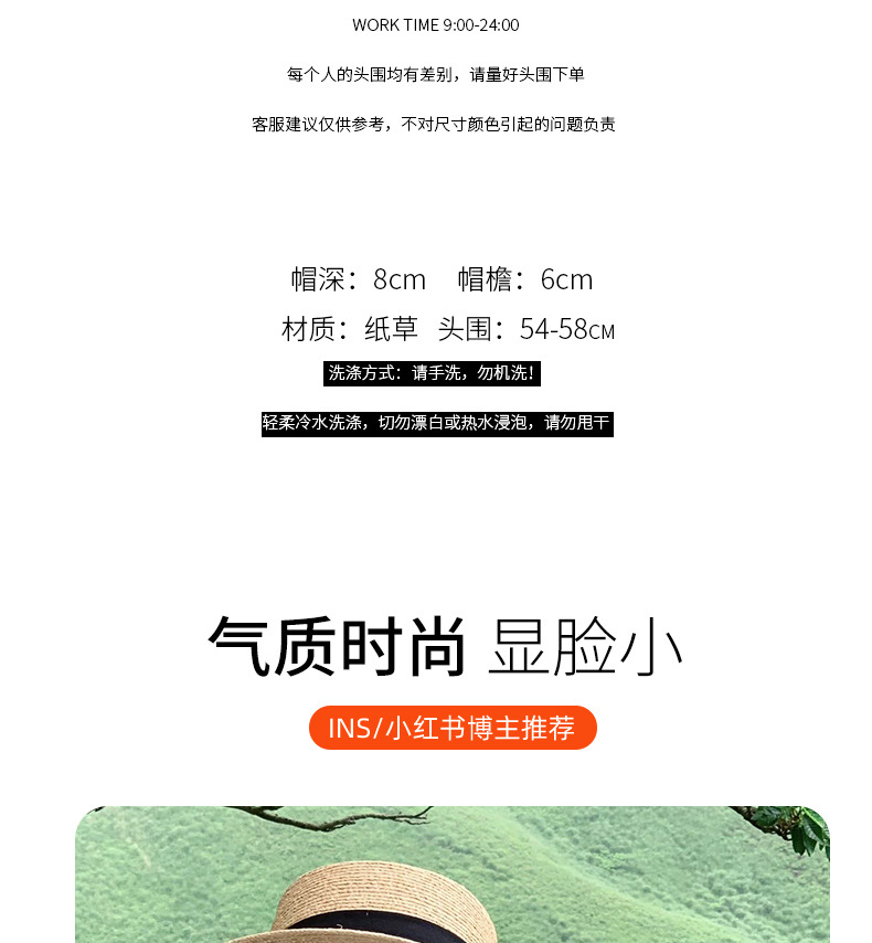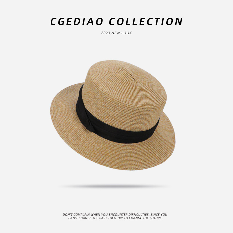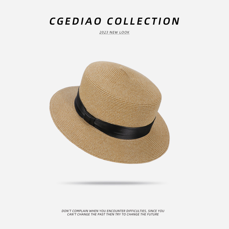 플랫 탑 밀짚 모자 여성의 프렌치 밀짚 탑 모자 2024 새로운 여름 빅 브림 햇빛 모자 해변 휴일 태양 모자스토어 가기