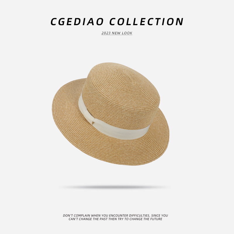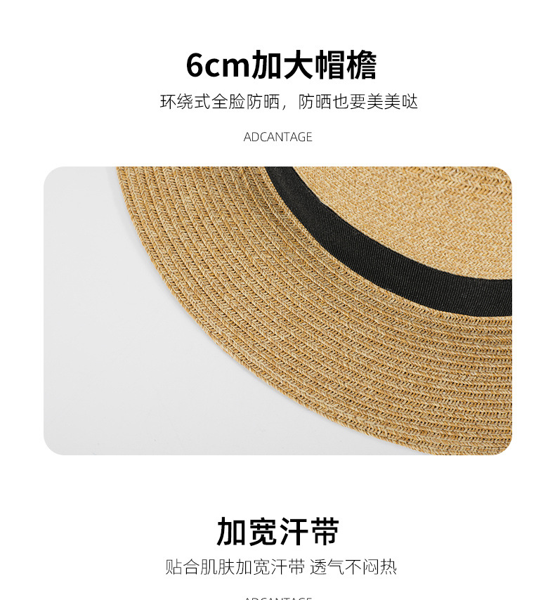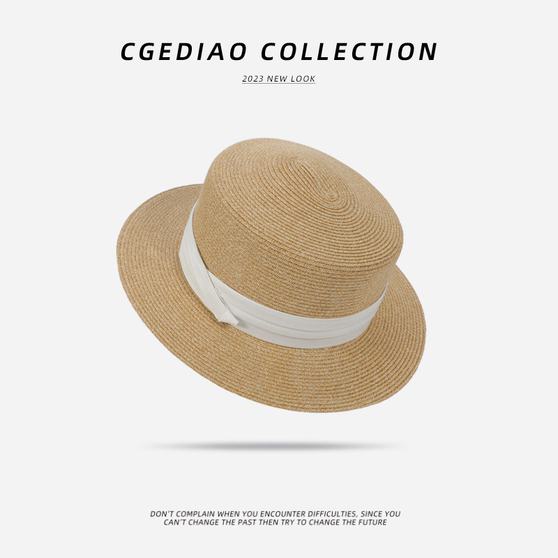 플랫 탑 밀짚 모자 여성의 프렌치 밀짚 탑 모자 2024 새로운 여름 빅 브림 햇빛 모자 해변 휴일 태양 모자
