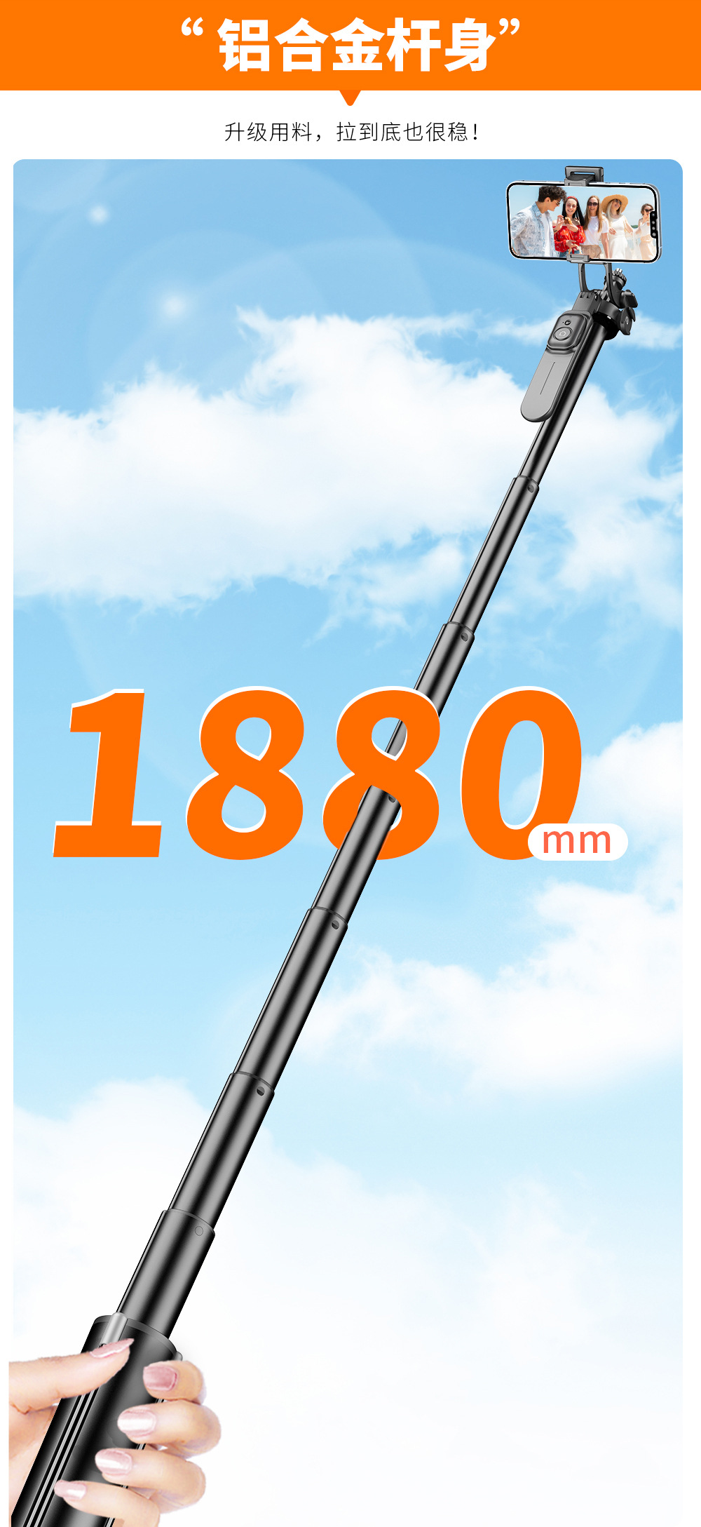 • C11-1.85 미터 알루미늄 합금 셀카 스틱 블랙 (단일 D03 램프)