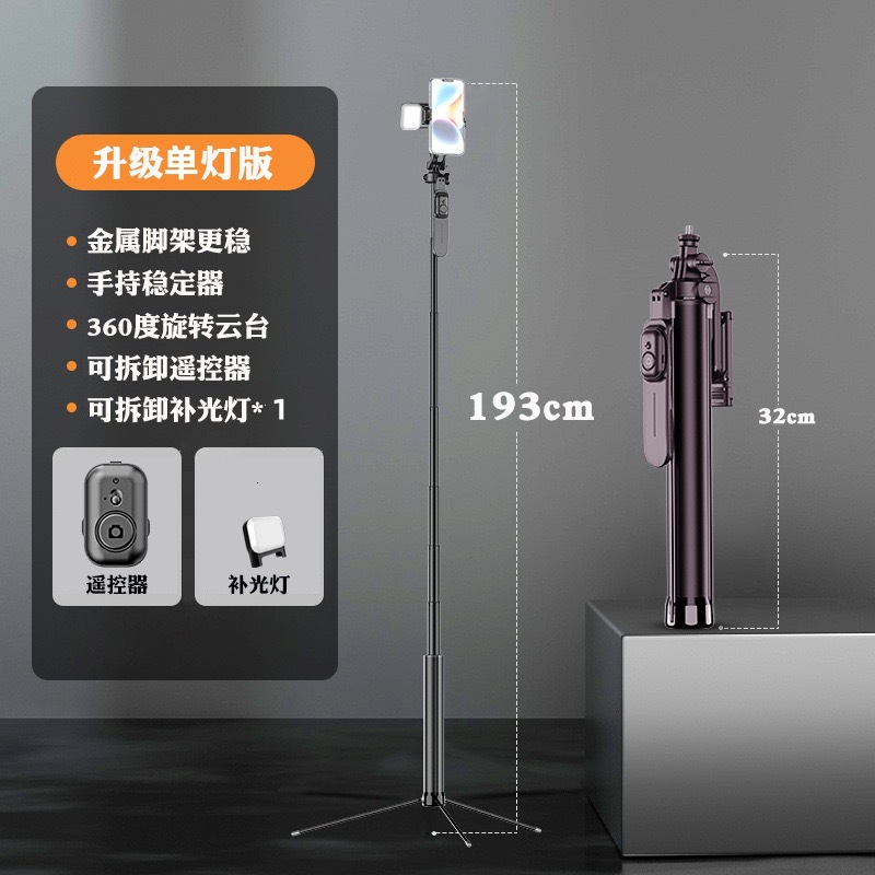 • C11-1.85 미터 알루미늄 합금 셀카 스틱 블랙 (더블 D03 조명)