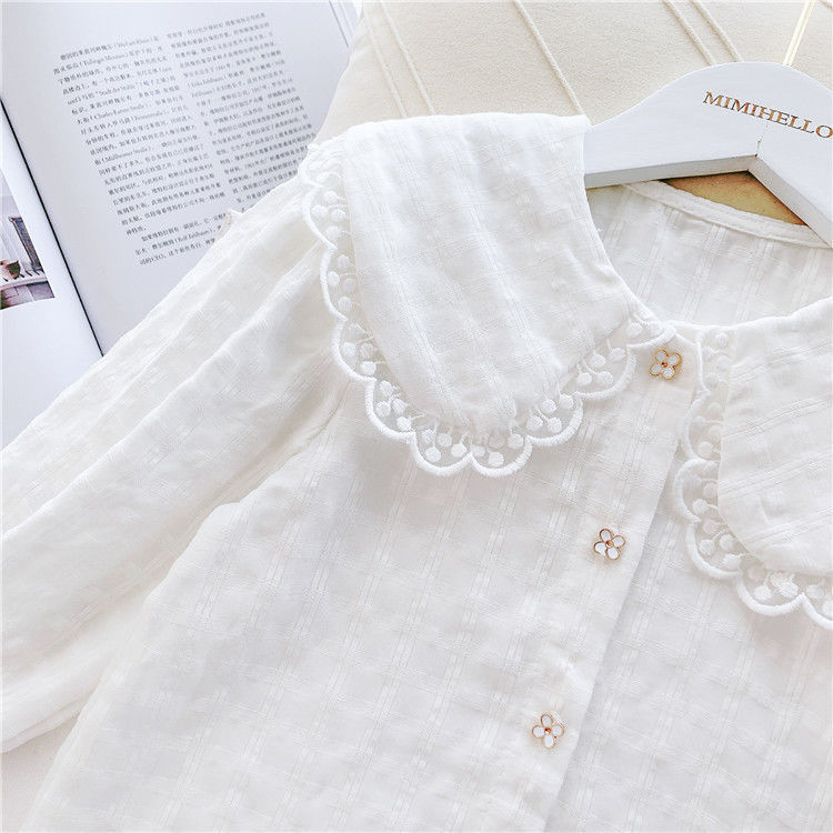 소녀 흰 셔츠 봄 2024 유행 서양식 어린이 봄과 가을 긴 소매 순수한 면베이스 셔츠 단색 트렌디스토어 가기