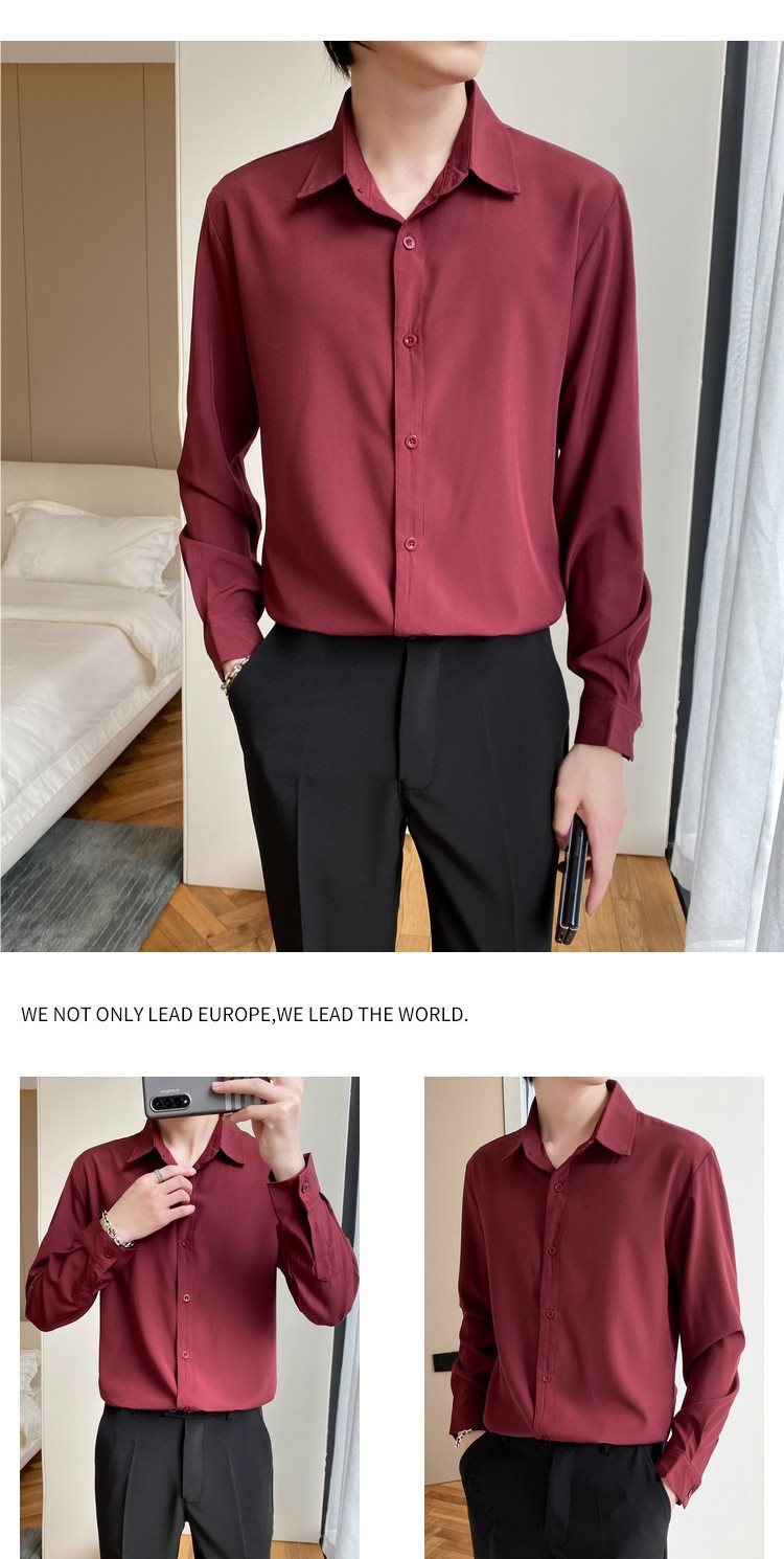 신랑 베스트 맨 웨딩 셔츠 남자의 버건디 긴 소매 셔츠 슬림 핏 비즈니스 캐주얼 원피스 베이스 셔츠스토어 가기