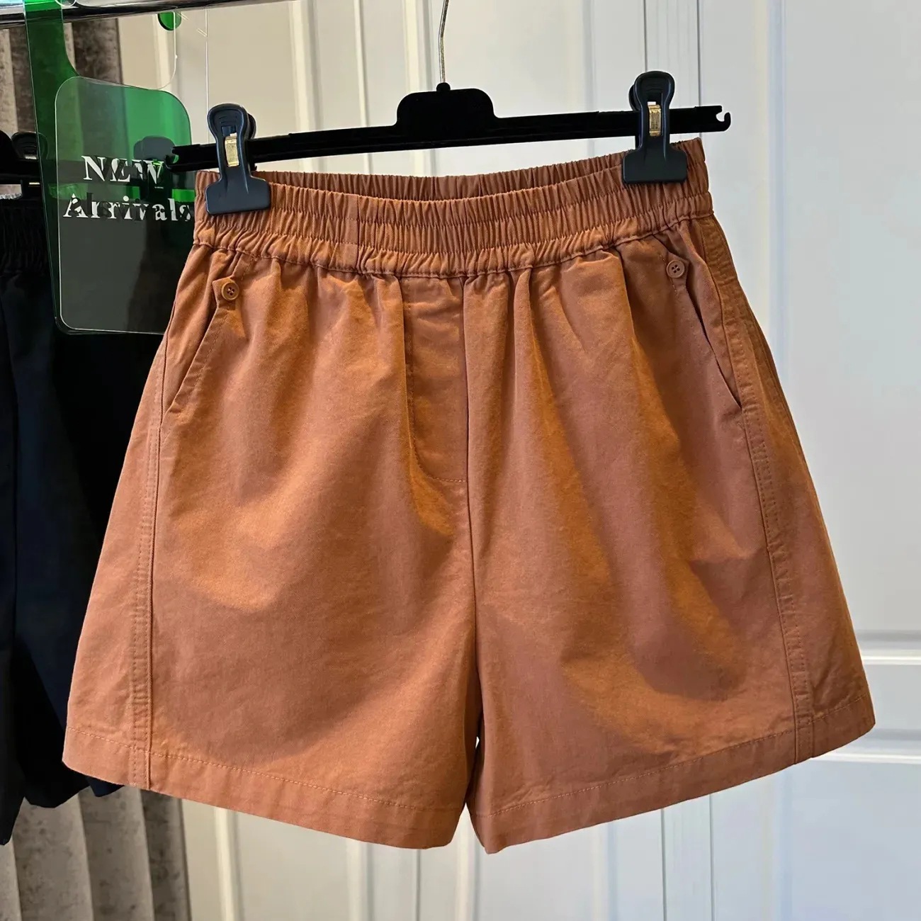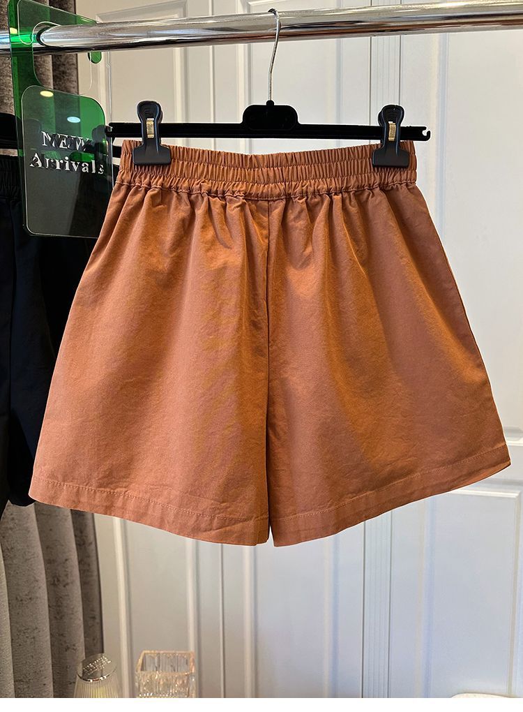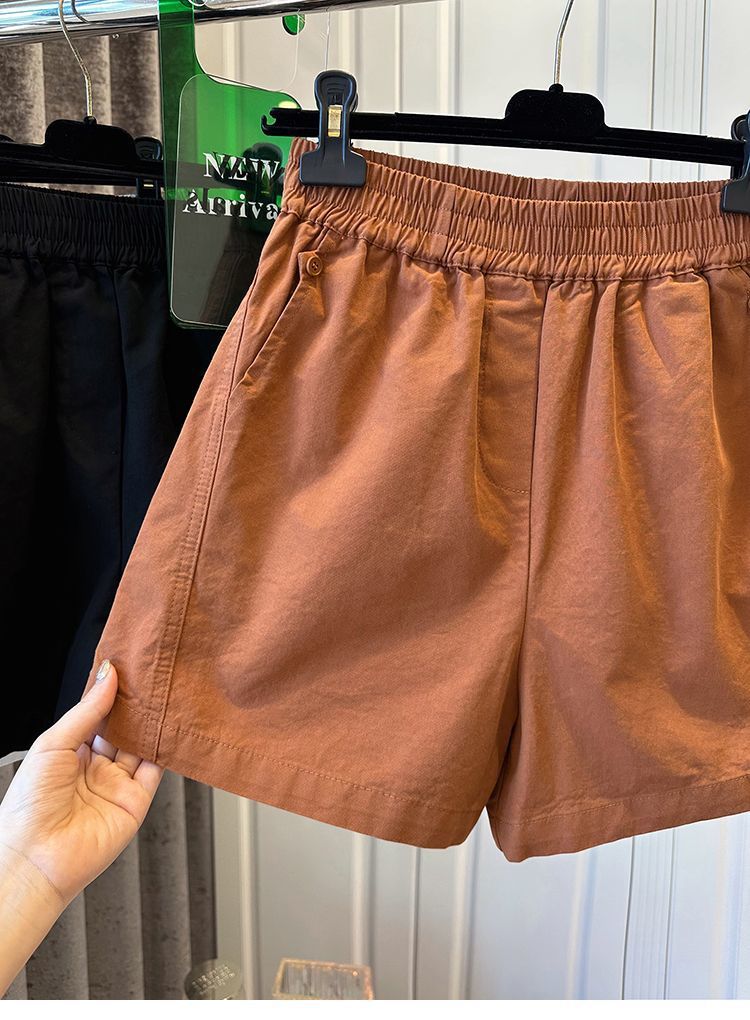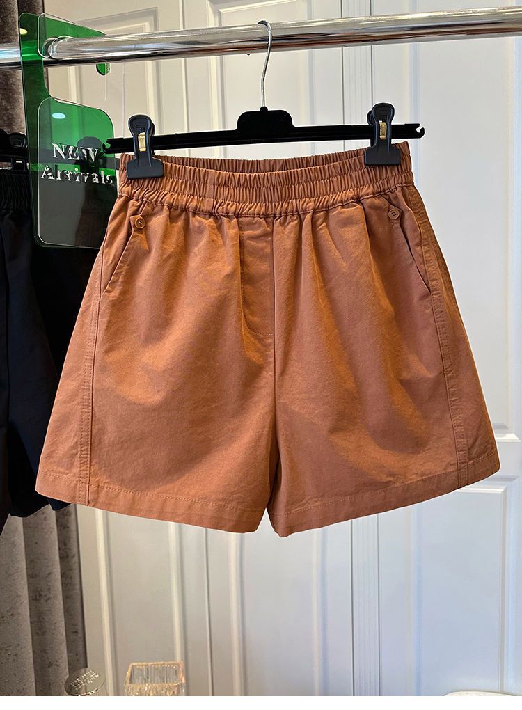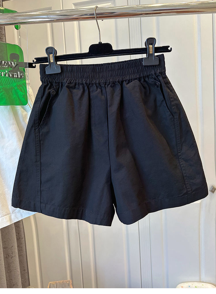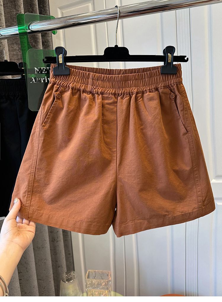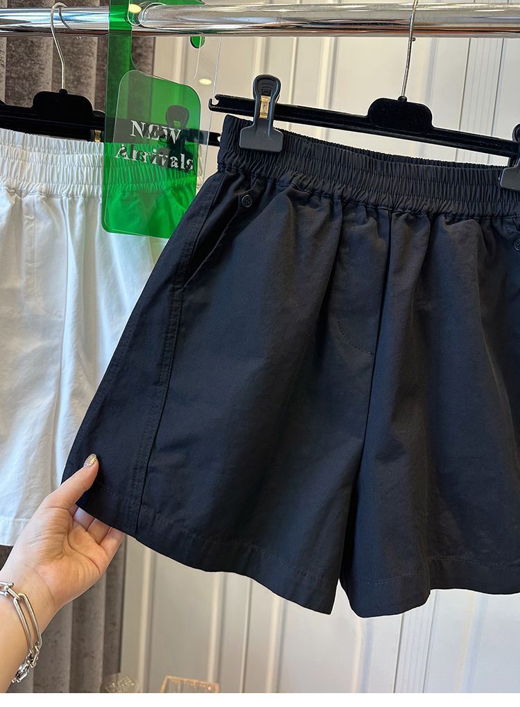 100 면 느슨한 느슨한 캐주얼 올 매치 반바지 여자 와이드 다리 바지 높은 허리 버튼 바느질 2025 여름 새로운스토어 가기