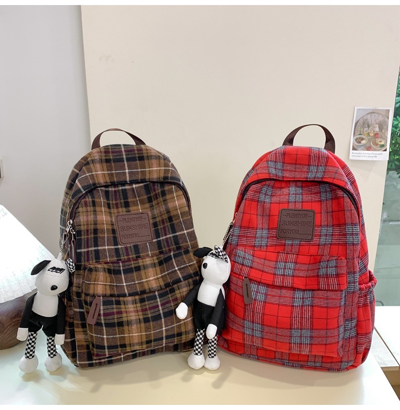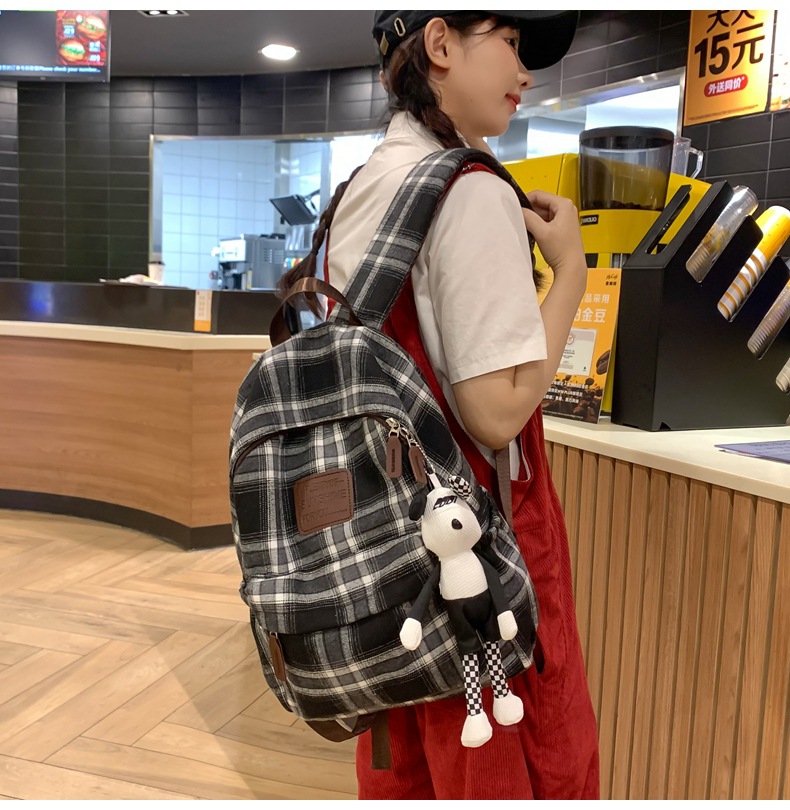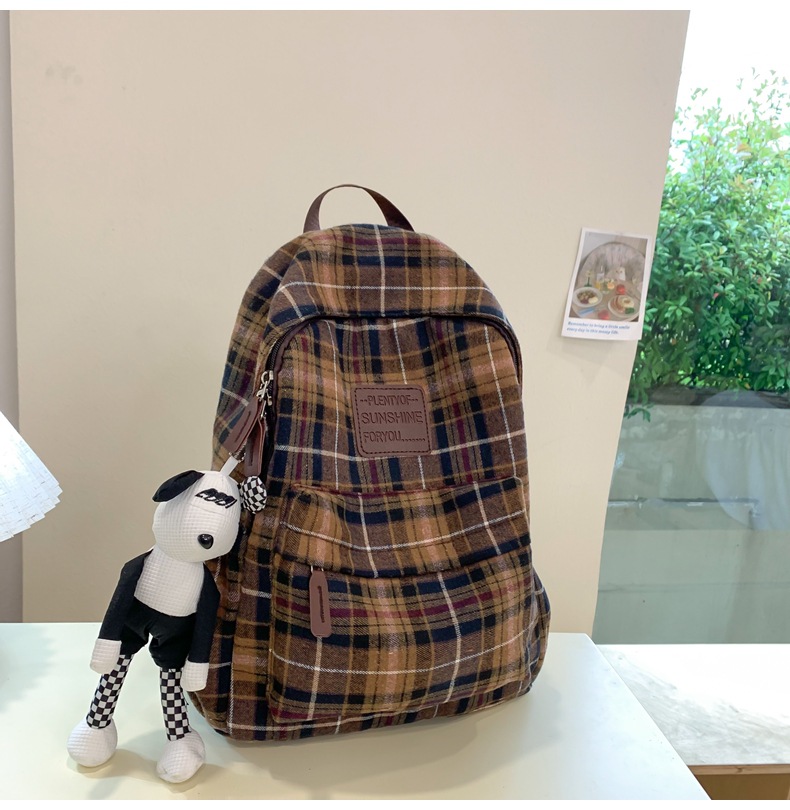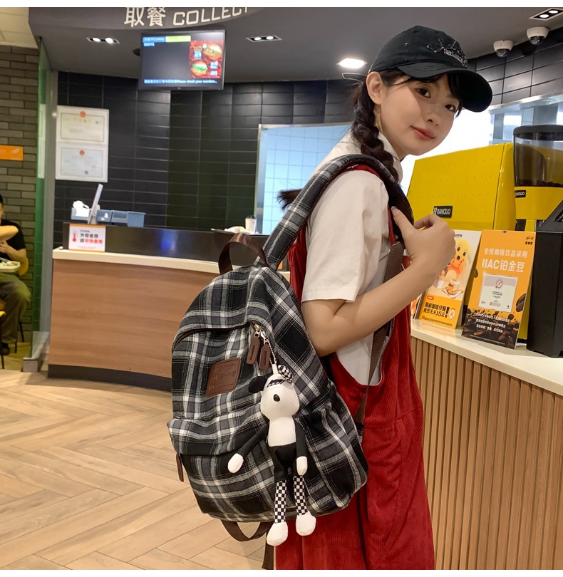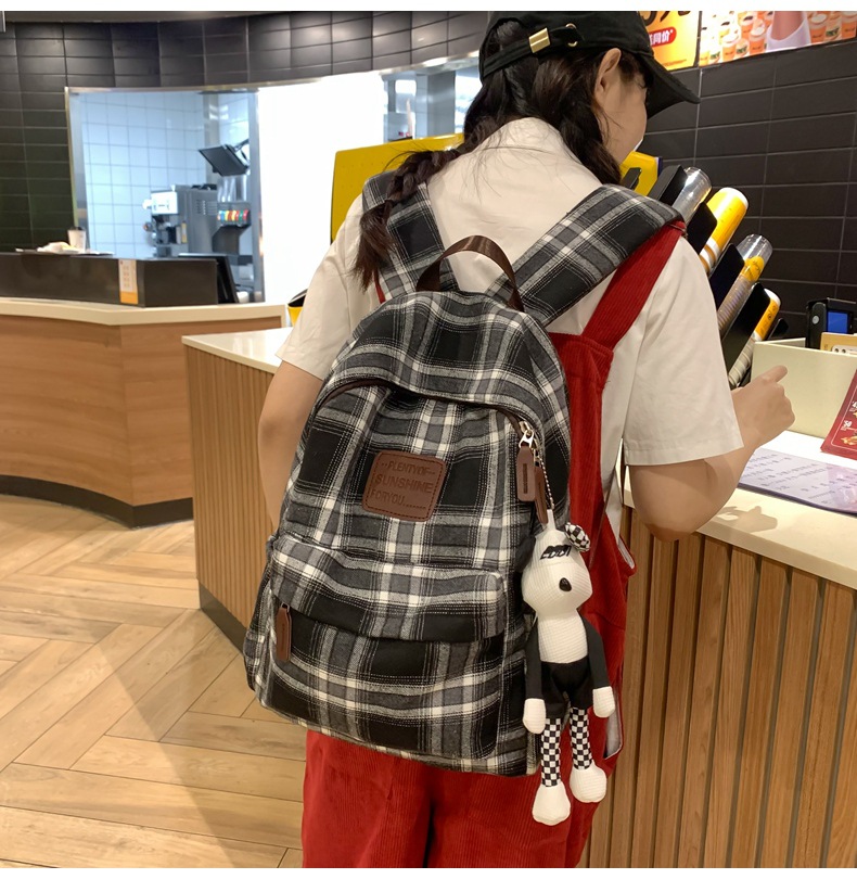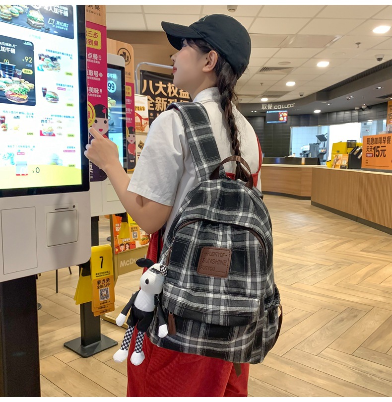 여성 중학생을위한 고 부가가치 책가방 고등학교 컴퓨터 가방 여대생을위한 대용량 한국식 격자 무늬 배낭스토어 가기