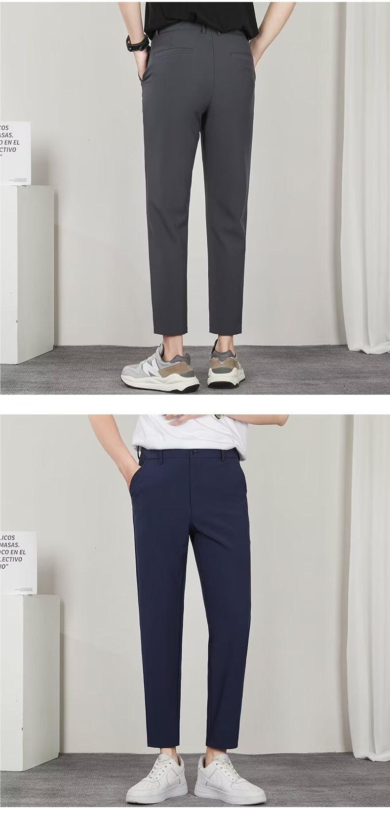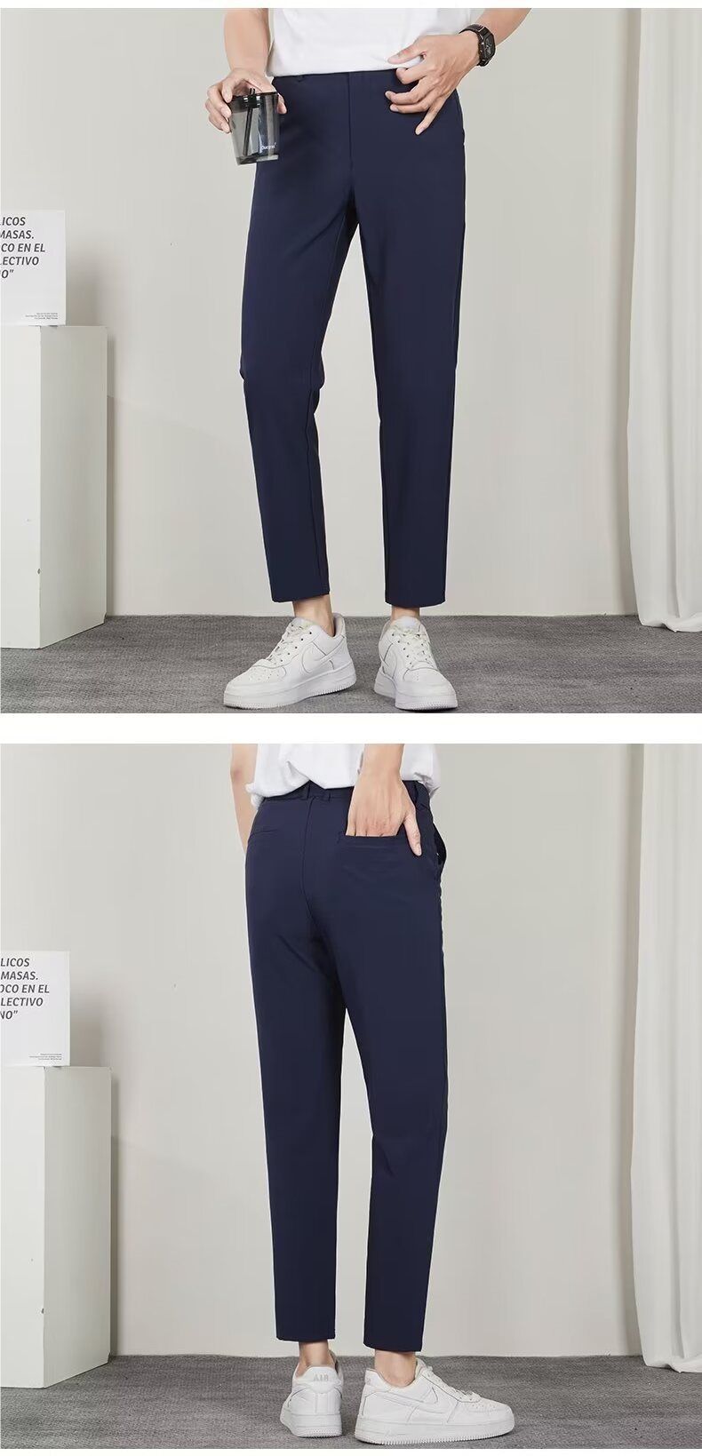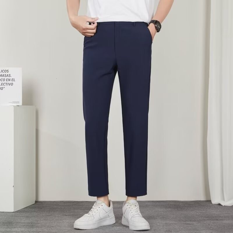 티베트 블루 바지 남자 여름 얇은 전문 원피스 슬림 핏 세트 바지 9 점 비즈니스 캐주얼스토어 가기