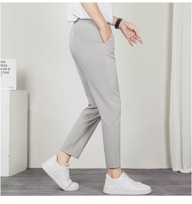 티베트 블루 바지 남자 여름 얇은 전문 원피스 슬림 핏 세트 바지 9 점 비즈니스 캐주얼