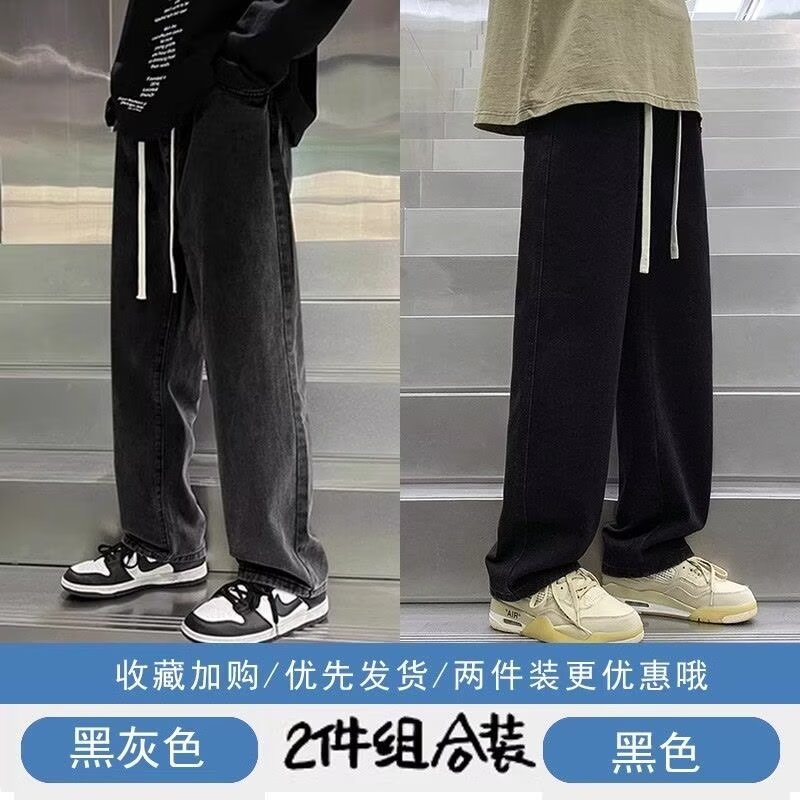 양탄자 허리 청바지 남자 여름 새로운 느슨한 직선 넓은 다리 바지 유행 브랜드 복고풍 캐주얼 바지 소년스토어 가기