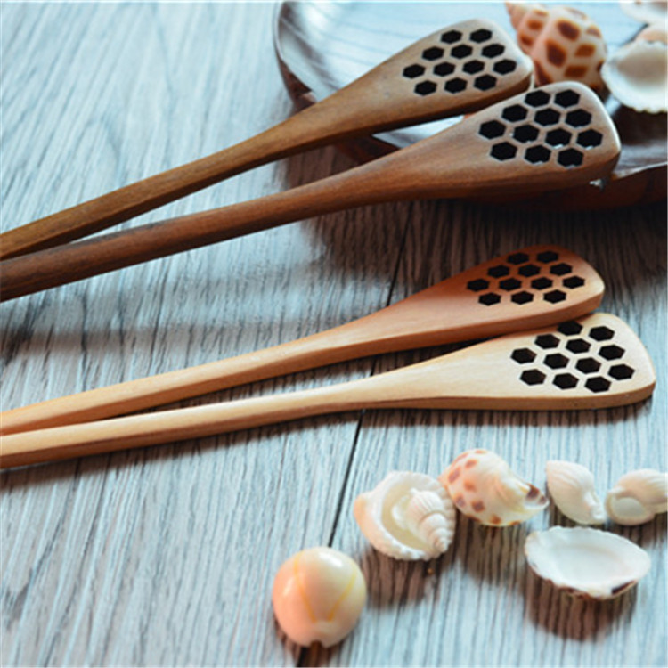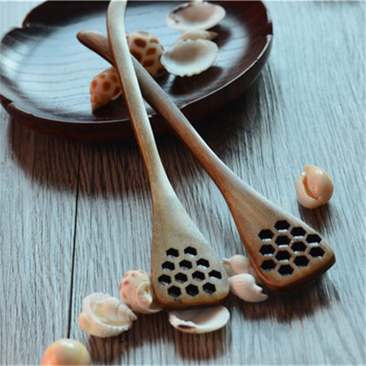 창의적인 벌집 꿀 스푼, 속이 빈 믹싱 스푼, 나무 스푼, 일상적인 식기, 전체 소재, 화상 방지 손으로 만든 단단한 나무 스푼