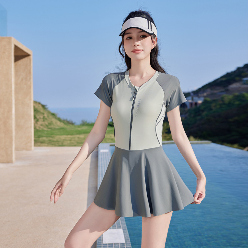 스포츠 수영복 여성용 신식 보수적 인 원피스 수영복, 슬림 플러스 사이즈 수영복을 복으로 덮는 학생들을위한 지퍼