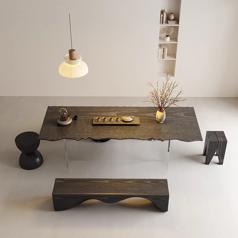 단단한 나무 차 테이블과 의자 조합 침묵 바람 탄산 검은 색 큰 접시 차 테이블 홈스테이 인터넷 축하 아크릴 차 테이블