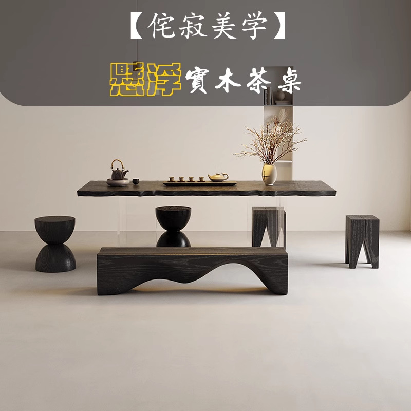 단단한 나무 차 테이블과 의자 조합 침묵 바람 탄산 검은 색 큰 접시 차 테이블 홈스테이 인터넷 축하 아크릴 차 테이블스토어 가기