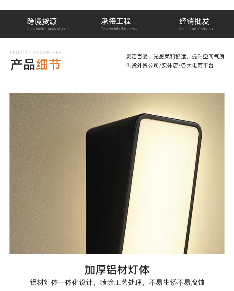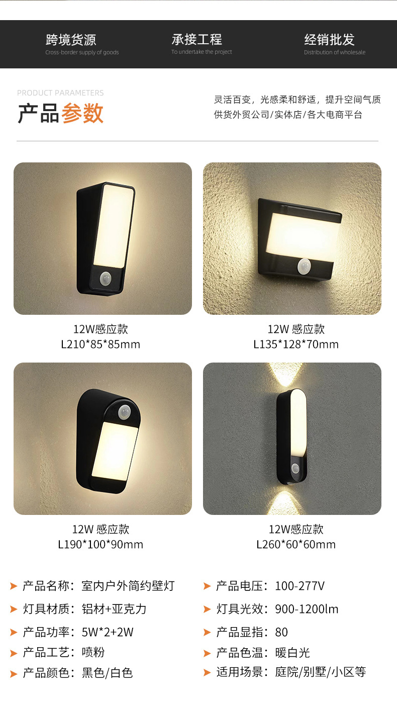 새로운 야외 방수 벽 램프 알루미늄 현대 유도 벽 램프 야외 간단한 빌라 외부 벽 장식 벽 램프 국경
