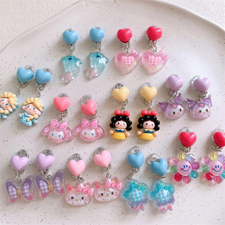 귀여운 아이들 만화 사랑 귀 클립 달콤한 소녀 펜던트 귀 구멍 안티 통증 귀걸이 액세서리