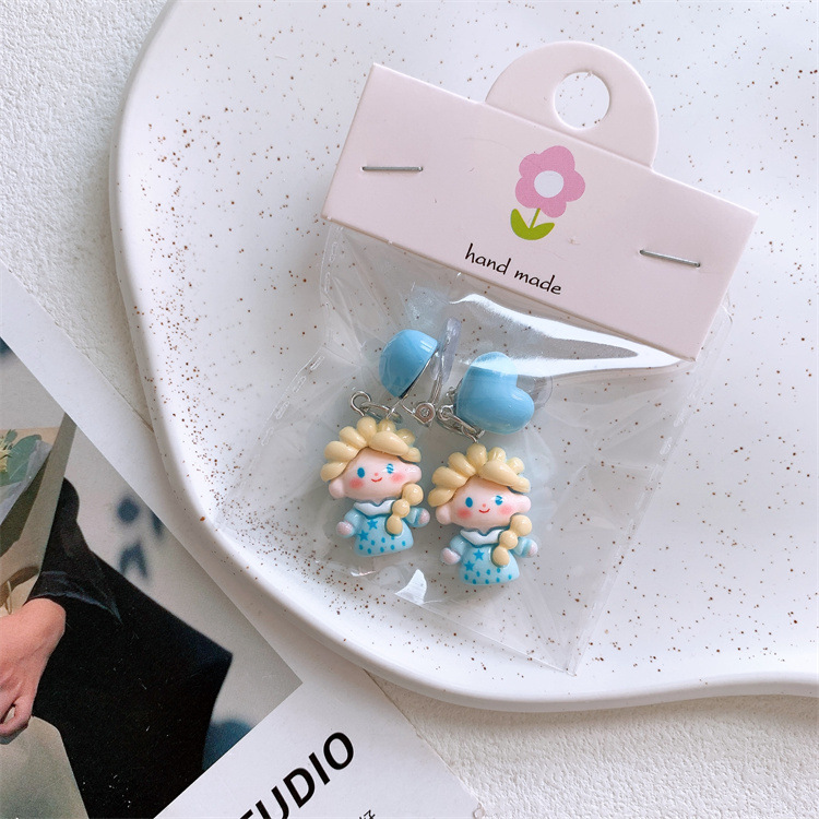 귀여운 아이들 만화 사랑 귀 클립 달콤한 소녀 펜던트 귀 구멍 안티 통증 귀걸이 액세서리스토어 가기